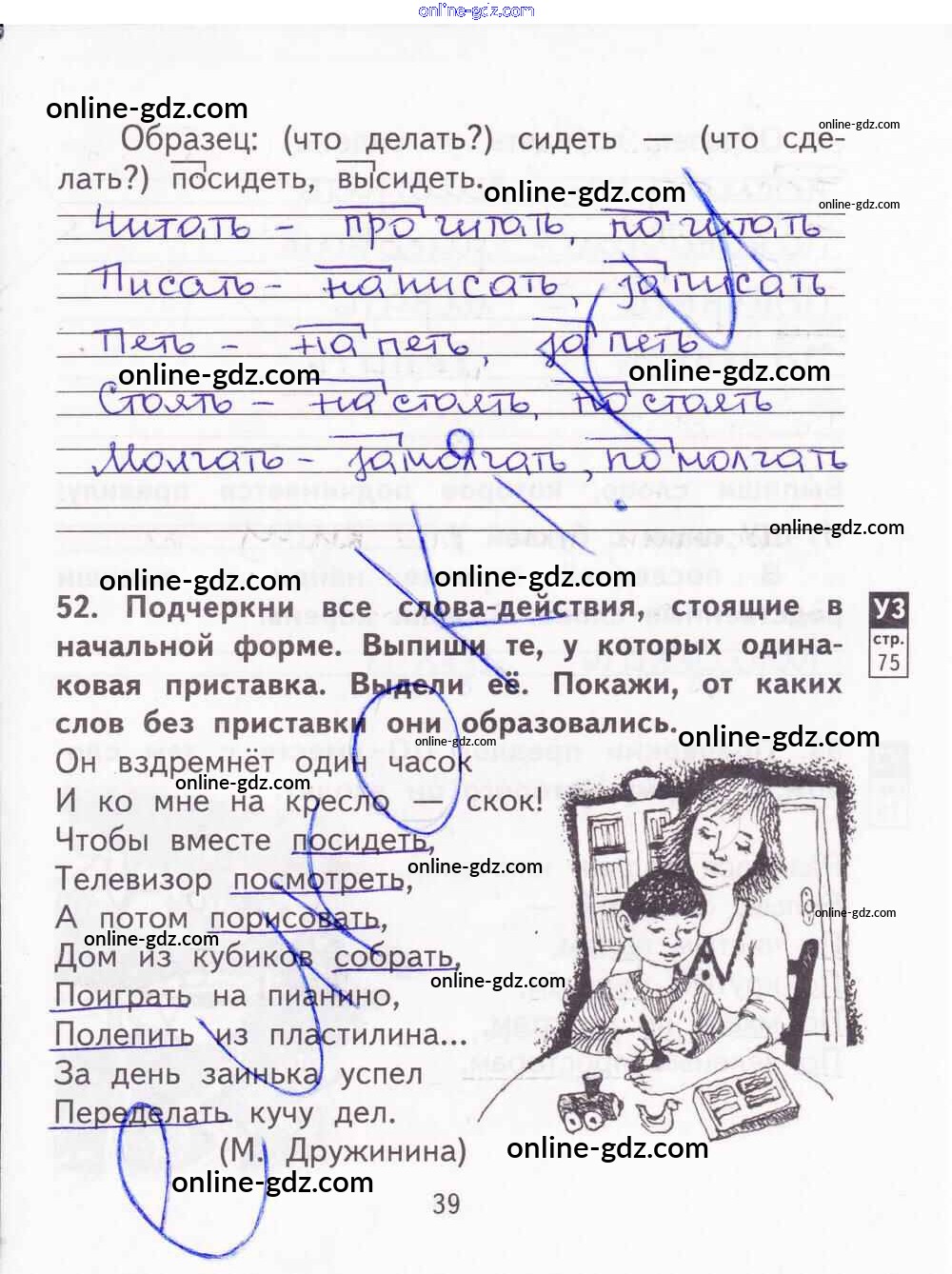 Готовые домашние задания по Русскому языку за 2 класс Тетрадь для самостоятельной работы Байкова, Малаховская 2017 - Часть 2. Страницы 39