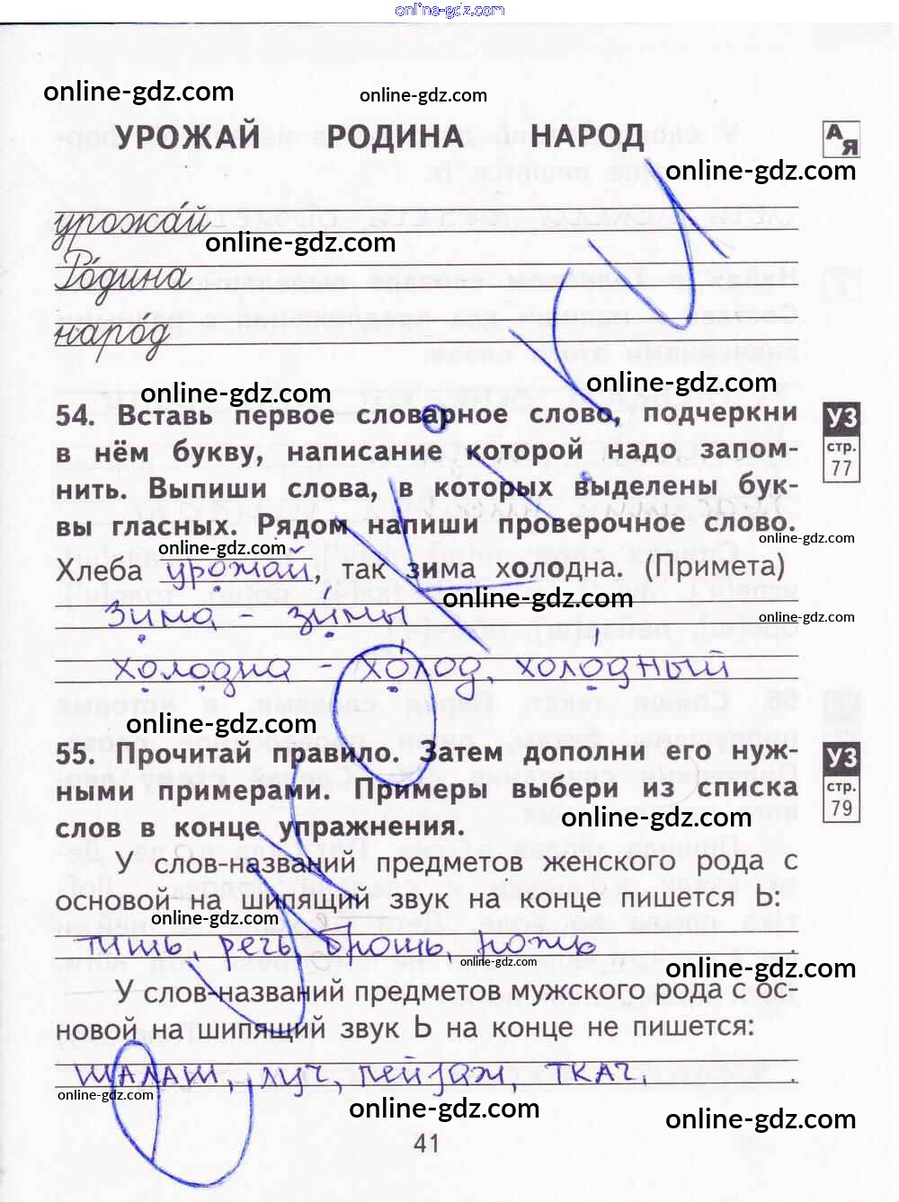 Готовые домашние задания по Русскому языку за 2 класс Тетрадь для самостоятельной работы Байкова, Малаховская 2017 - Часть 2. Страницы 41