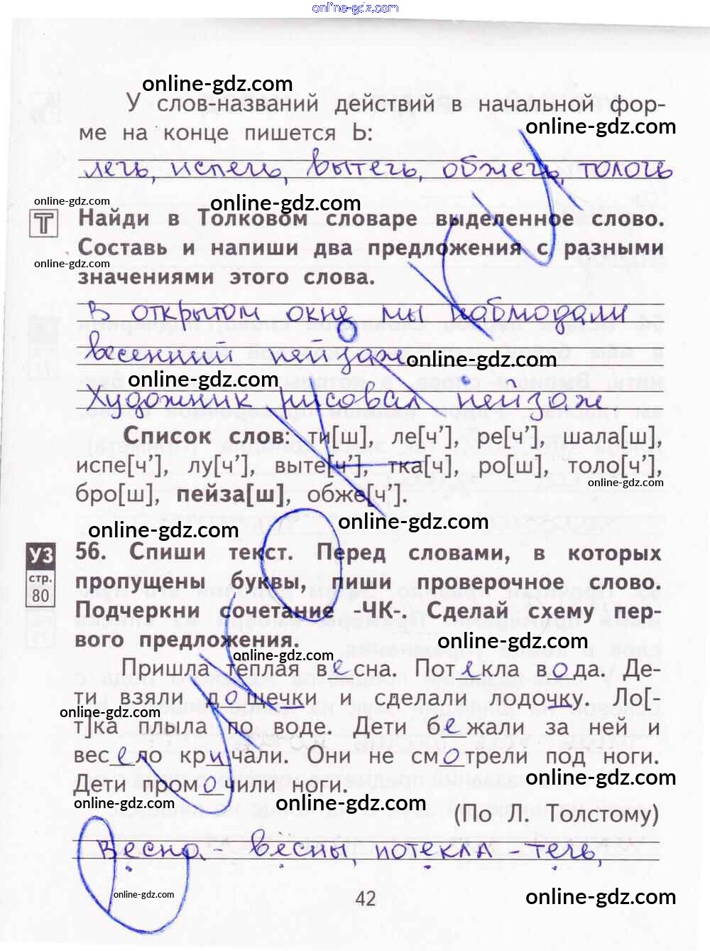 Готовые домашние задания по Русскому языку за 2 класс Тетрадь для самостоятельной работы Байкова, Малаховская 2017 - Часть 2. Страницы 42