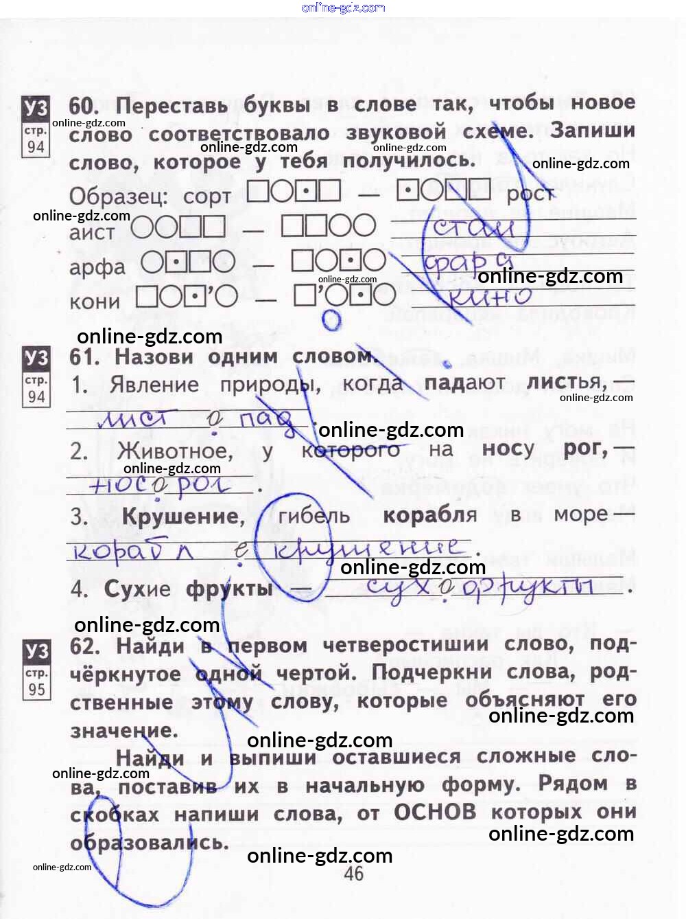 Готовые домашние задания по Русскому языку за 2 класс Тетрадь для самостоятельной работы Байкова, Малаховская 2017 - Часть 2. Страницы 46