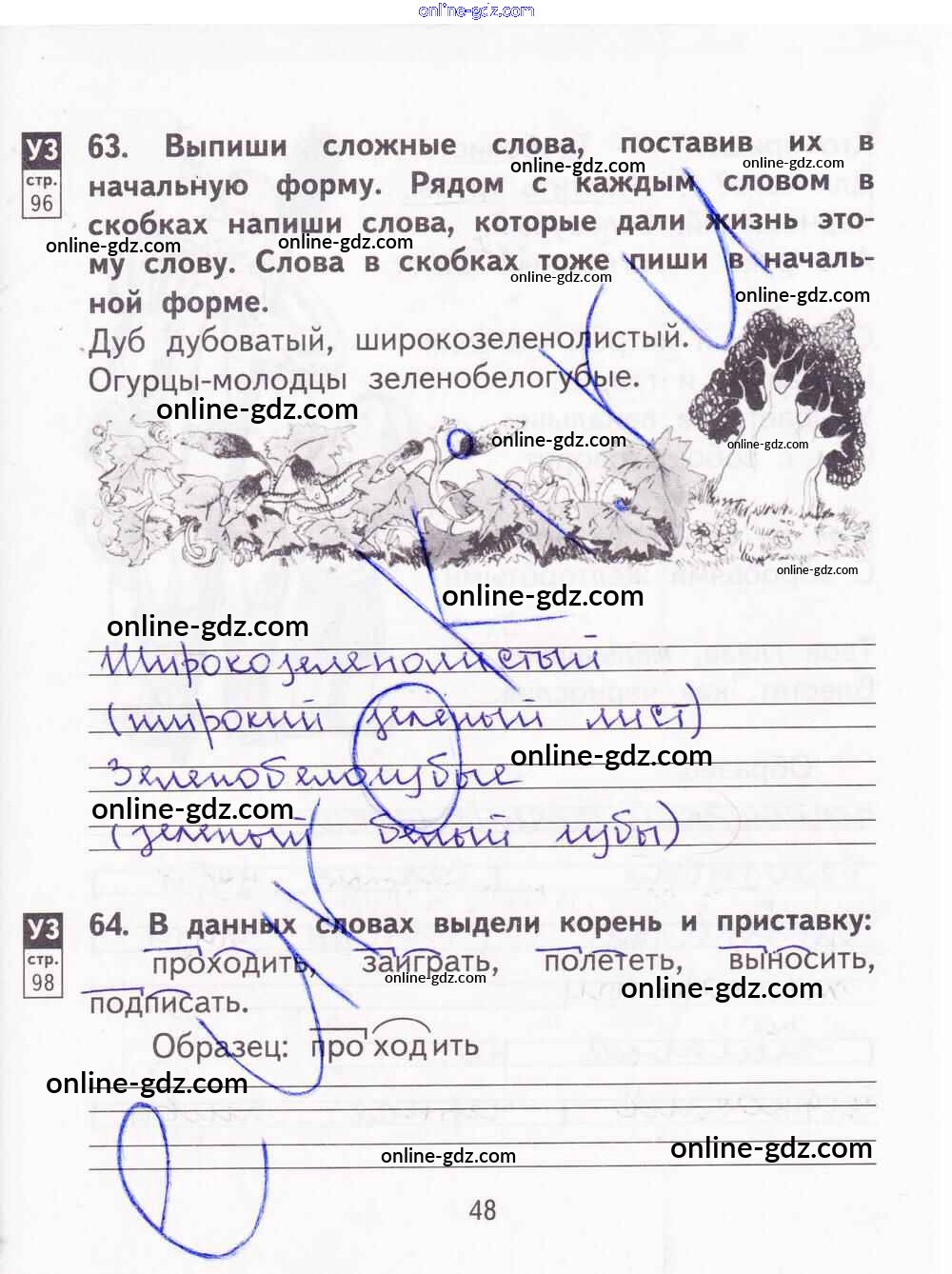 Готовые домашние задания по Русскому языку за 2 класс Тетрадь для самостоятельной работы Байкова, Малаховская 2017 - Часть 2. Страницы 48