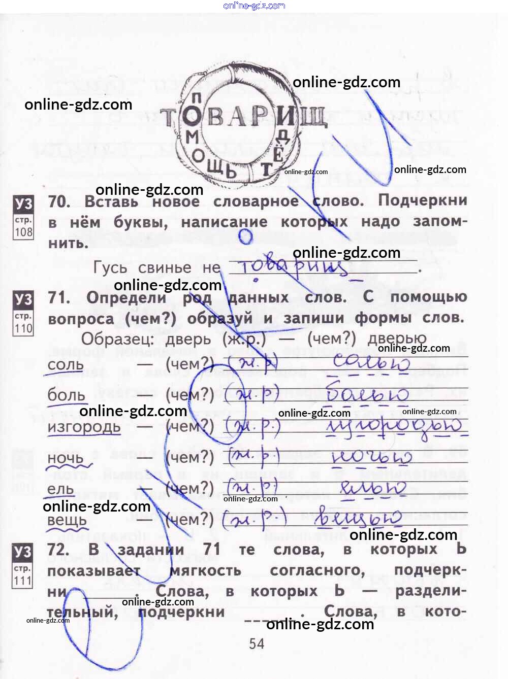 Готовые домашние задания по Русскому языку за 2 класс Тетрадь для самостоятельной работы Байкова, Малаховская 2017 - Часть 2. Страницы 54