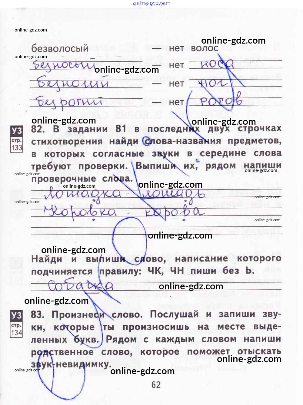 Готовые домашние задания по Русскому языку за 2 класс Тетрадь для самостоятельной работы Байкова, Малаховская 2017 - Часть 2. Страницы 62