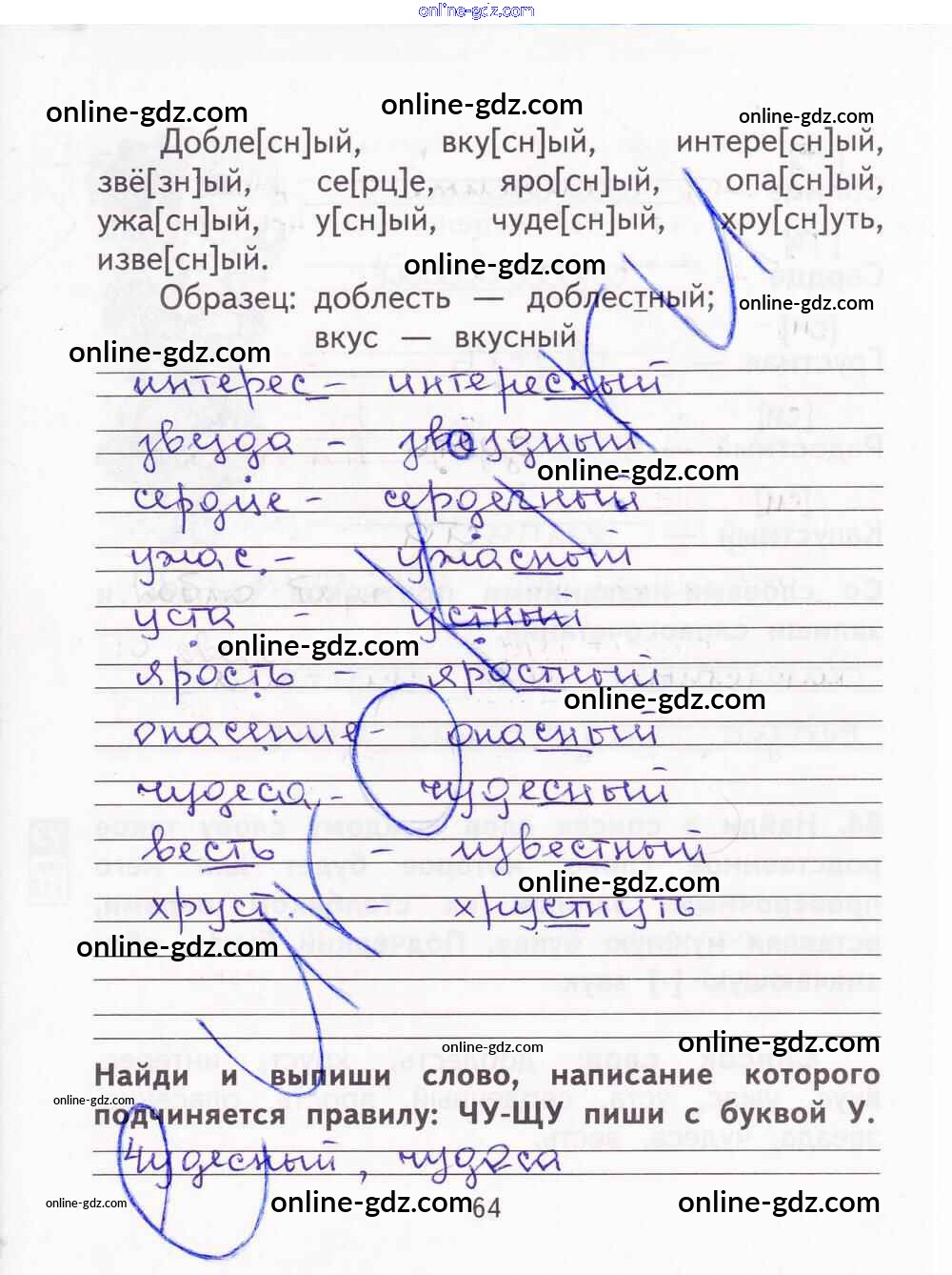 Готовые домашние задания по Русскому языку за 2 класс Тетрадь для самостоятельной работы Байкова, Малаховская 2017 - Часть 2. Страницы 64