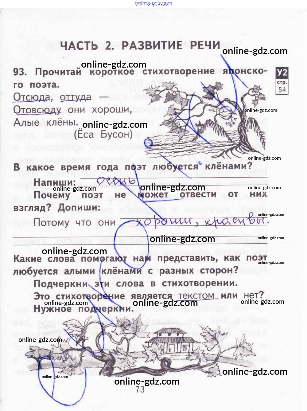 Готовые домашние задания по Русскому языку за 2 класс Тетрадь для самостоятельной работы Байкова, Малаховская 2017 - Часть 2. Страницы 73