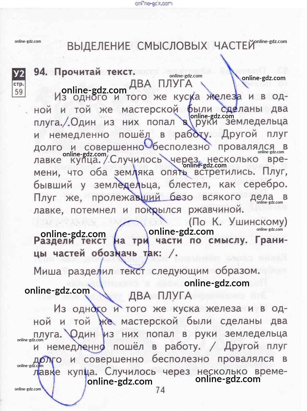 Готовые домашние задания по Русскому языку за 2 класс Тетрадь для самостоятельной работы Байкова, Малаховская 2017 - Часть 2. Страницы 74