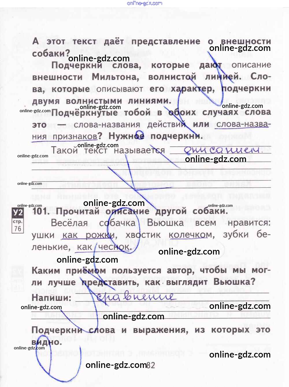 Готовые домашние задания по Русскому языку за 2 класс Тетрадь для самостоятельной работы Байкова, Малаховская 2017 - Часть 2. Страницы 82