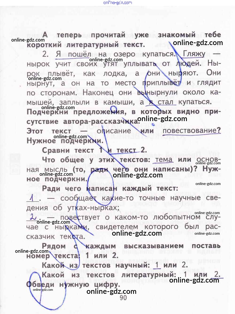 Готовые домашние задания по Русскому языку за 2 класс Тетрадь для самостоятельной работы Байкова, Малаховская 2017 - Часть 2. Страницы 90