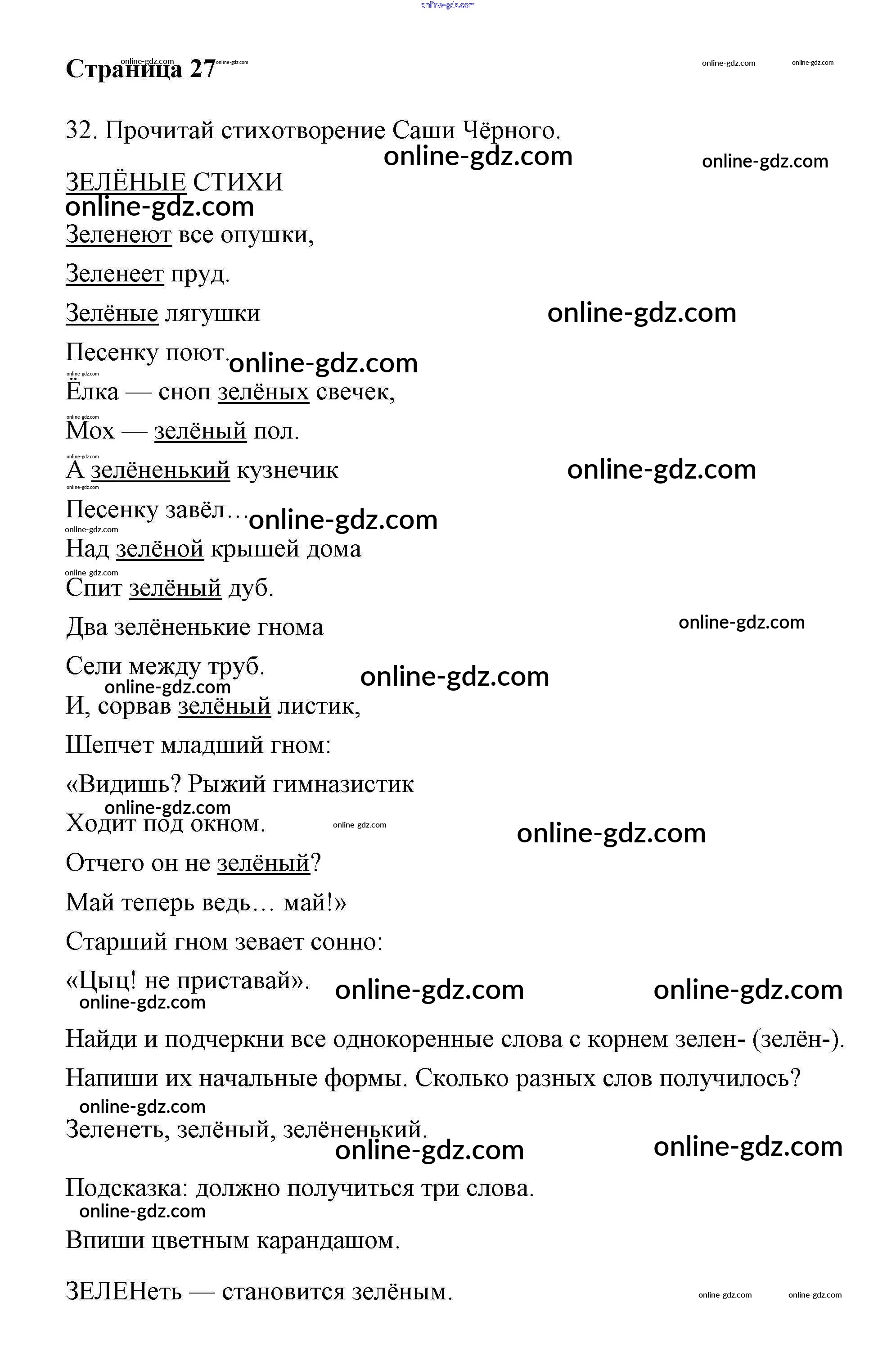 Готовые домашние задания по Русскому языку за 2 класс Тетрадь для самостоятельной работы Байкова, Малаховская 2017 - Часть 1. Страницы 27