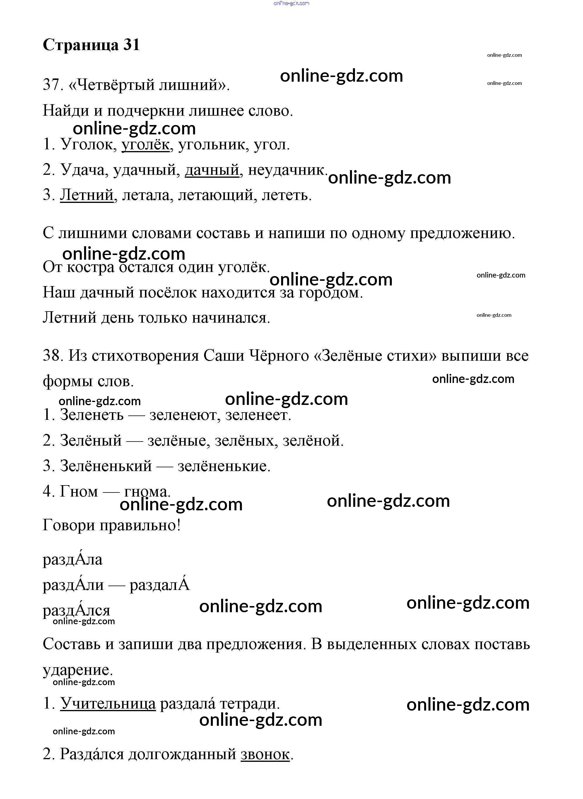 Готовые домашние задания по Русскому языку за 2 класс Тетрадь для самостоятельной работы Байкова, Малаховская 2017 - Часть 1. Страницы 31