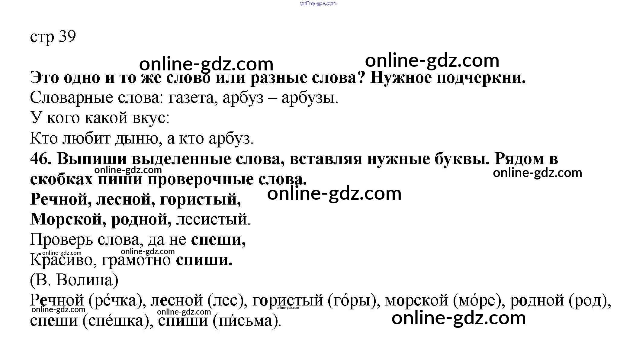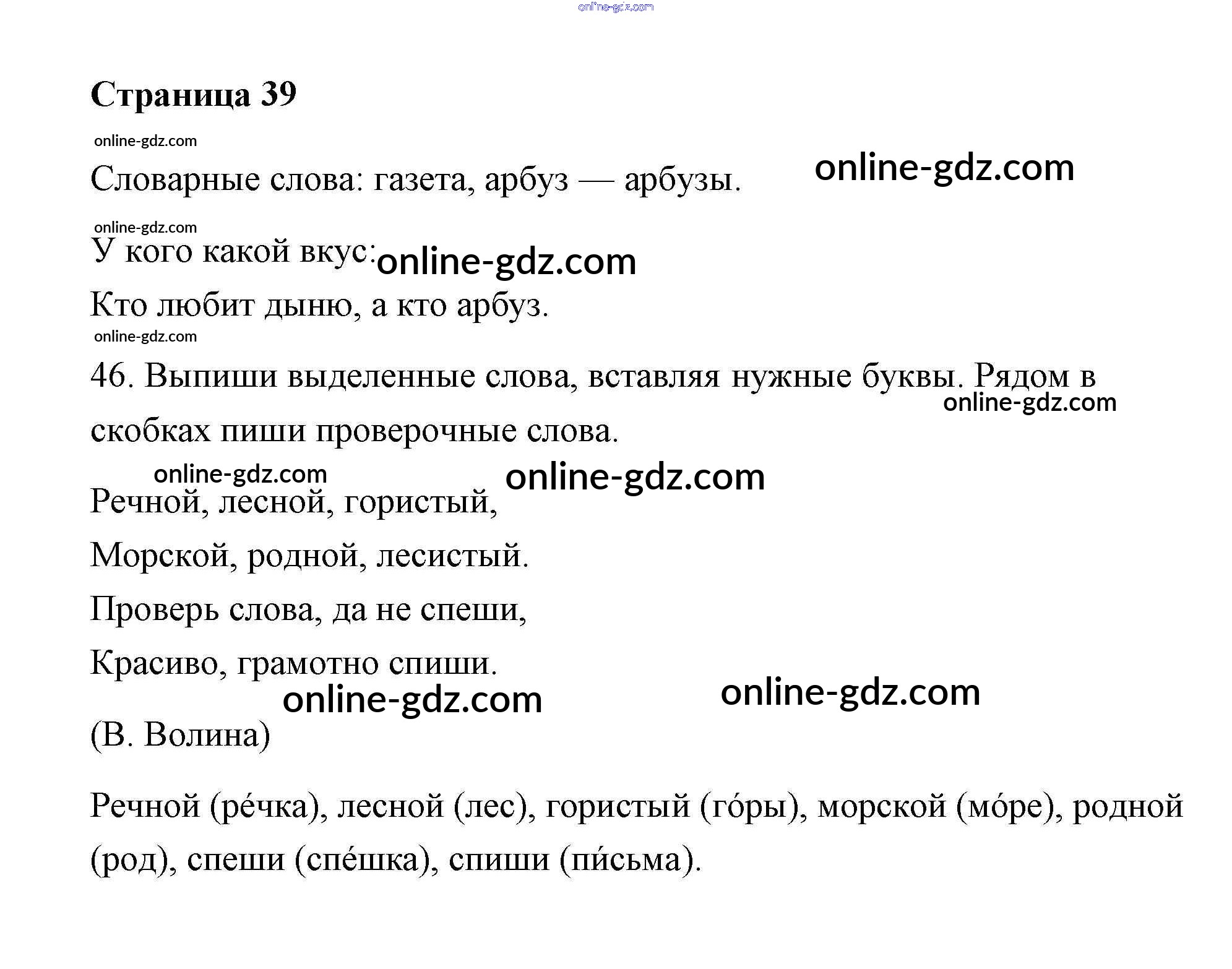 Готовые домашние задания по Русскому языку за 2 класс Тетрадь для самостоятельной работы Байкова, Малаховская 2017 - Часть 1. Страницы 39