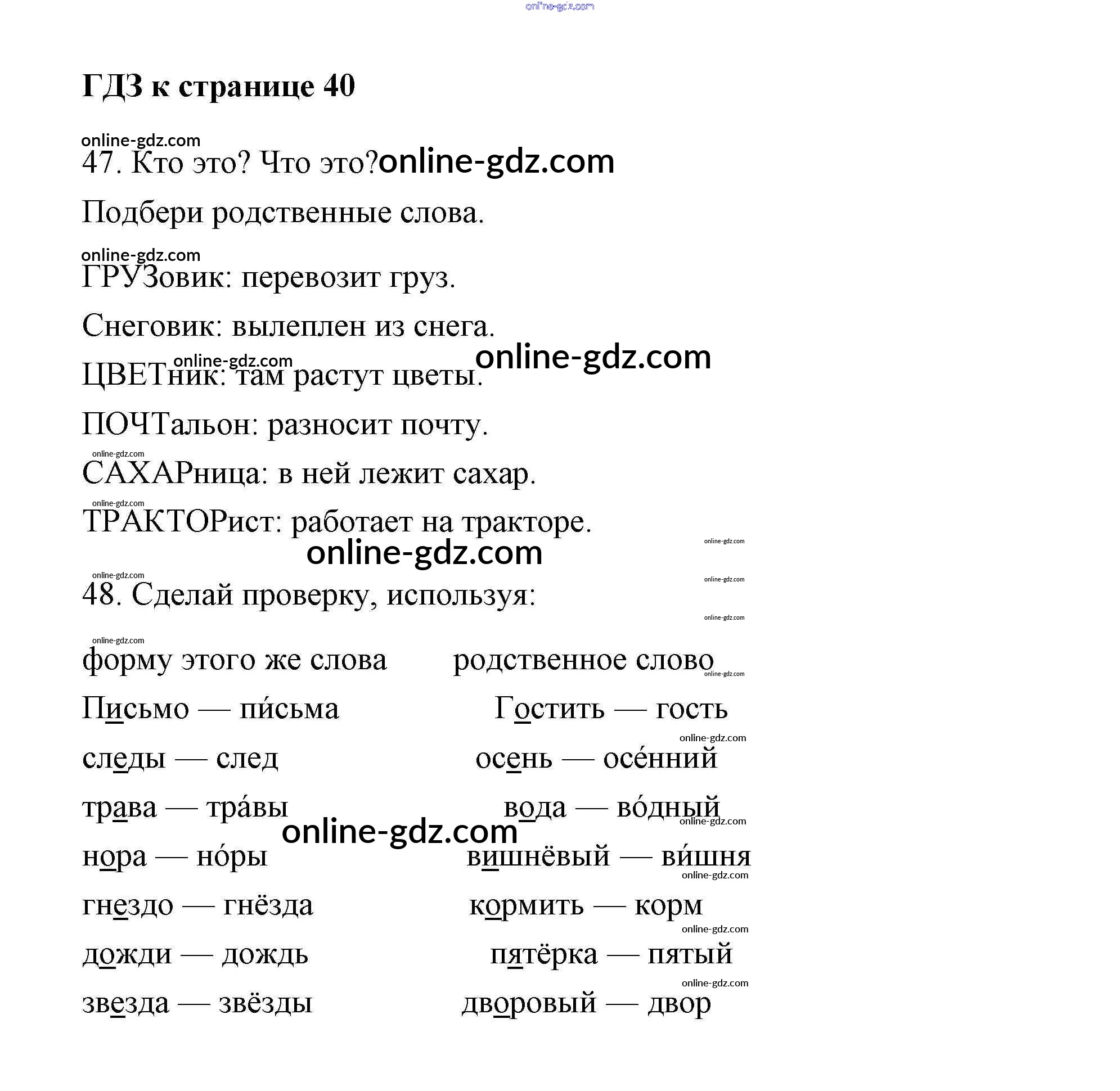 Готовые домашние задания по Русскому языку за 2 класс Тетрадь для самостоятельной работы Байкова, Малаховская 2017 - Часть 1. Страницы 40