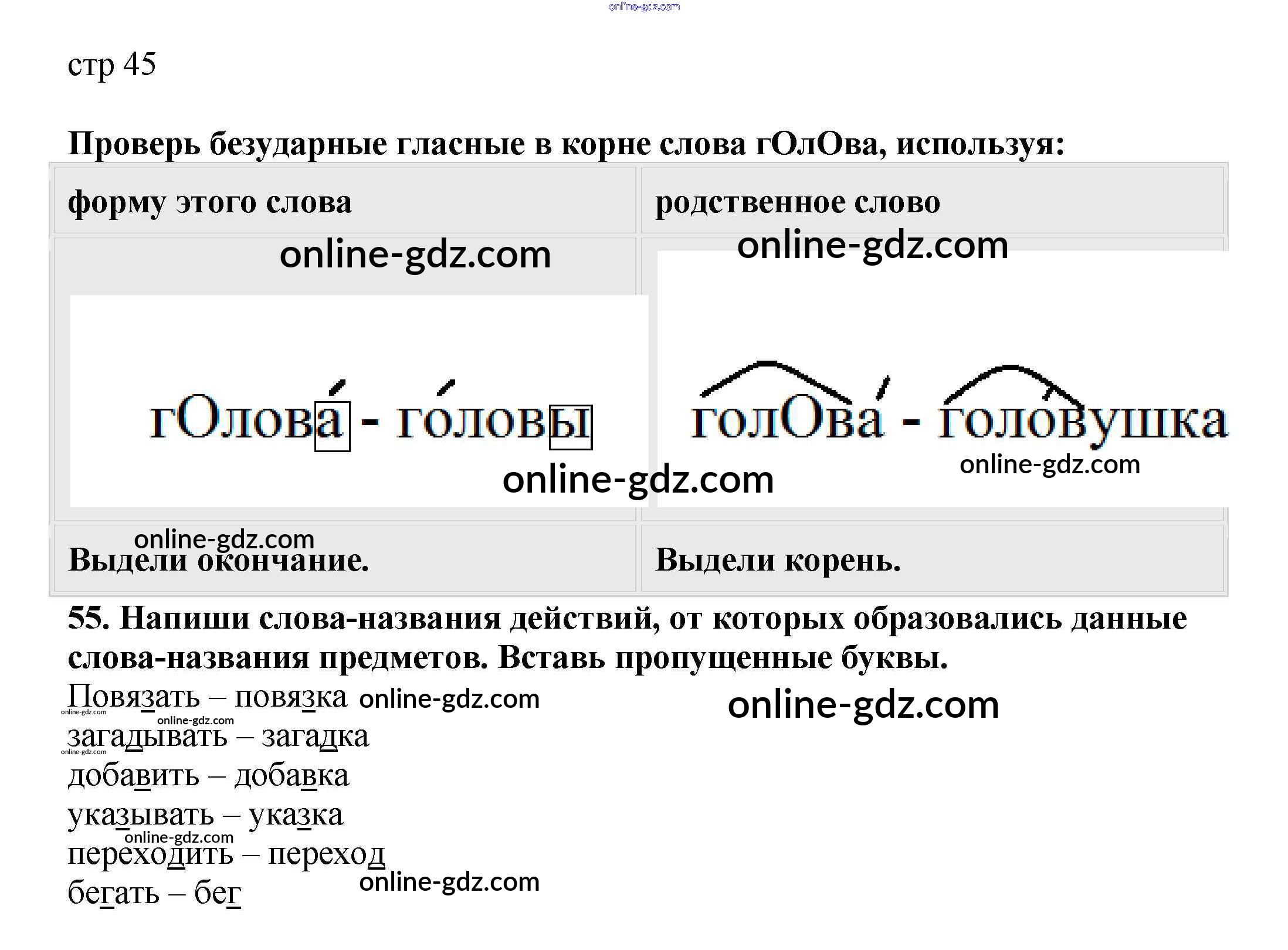 Готовые домашние задания по Русскому языку за 2 класс Тетрадь для самостоятельной работы Байкова, Малаховская 2017 - Часть 1. Страницы 45