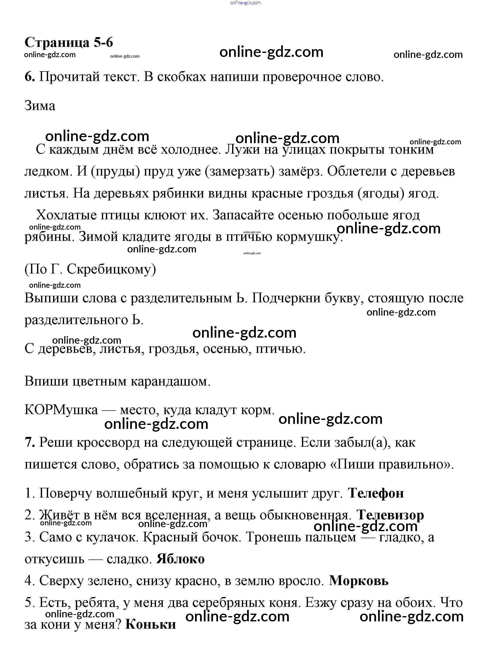 Готовые домашние задания по Русскому языку за 2 класс Тетрадь для самостоятельной работы Байкова, Малаховская 2017 - Часть 1. Страницы 5