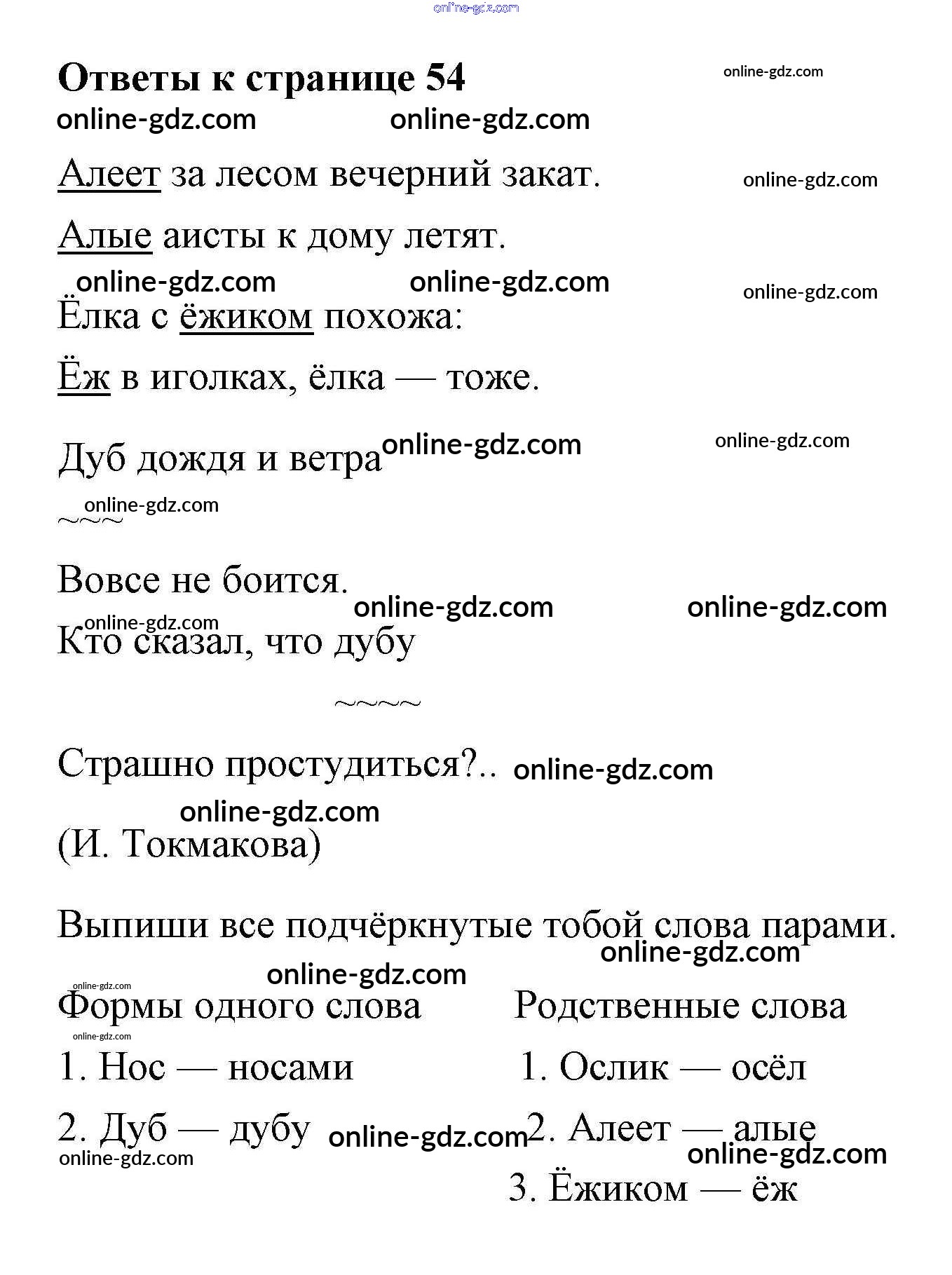 Готовые домашние задания по Русскому языку за 2 класс Тетрадь для самостоятельной работы Байкова, Малаховская 2017 - Часть 1. Страницы 54