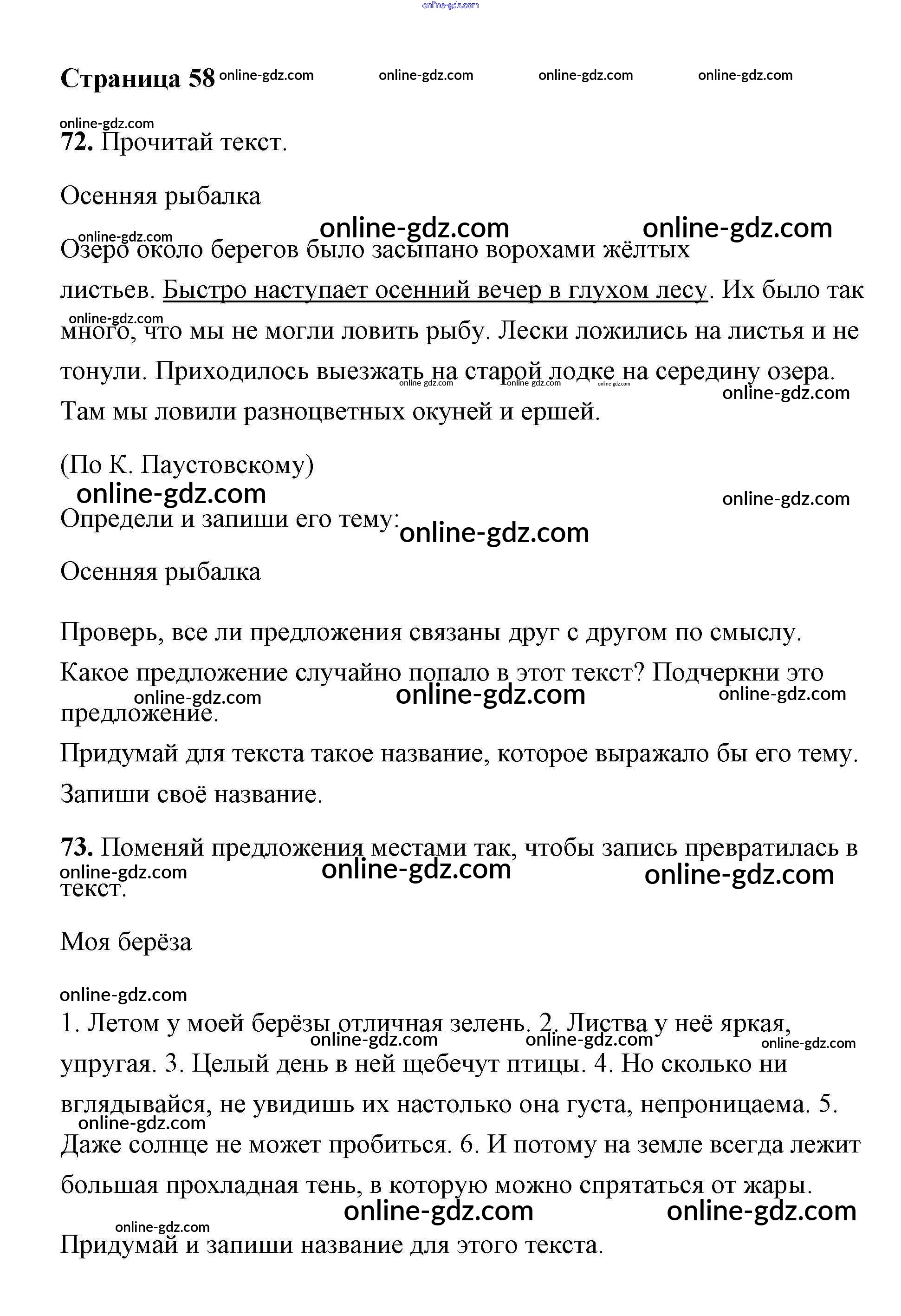 Готовые домашние задания по Русскому языку за 2 класс Тетрадь для самостоятельной работы Байкова, Малаховская 2017 - Часть 1. Страницы 58