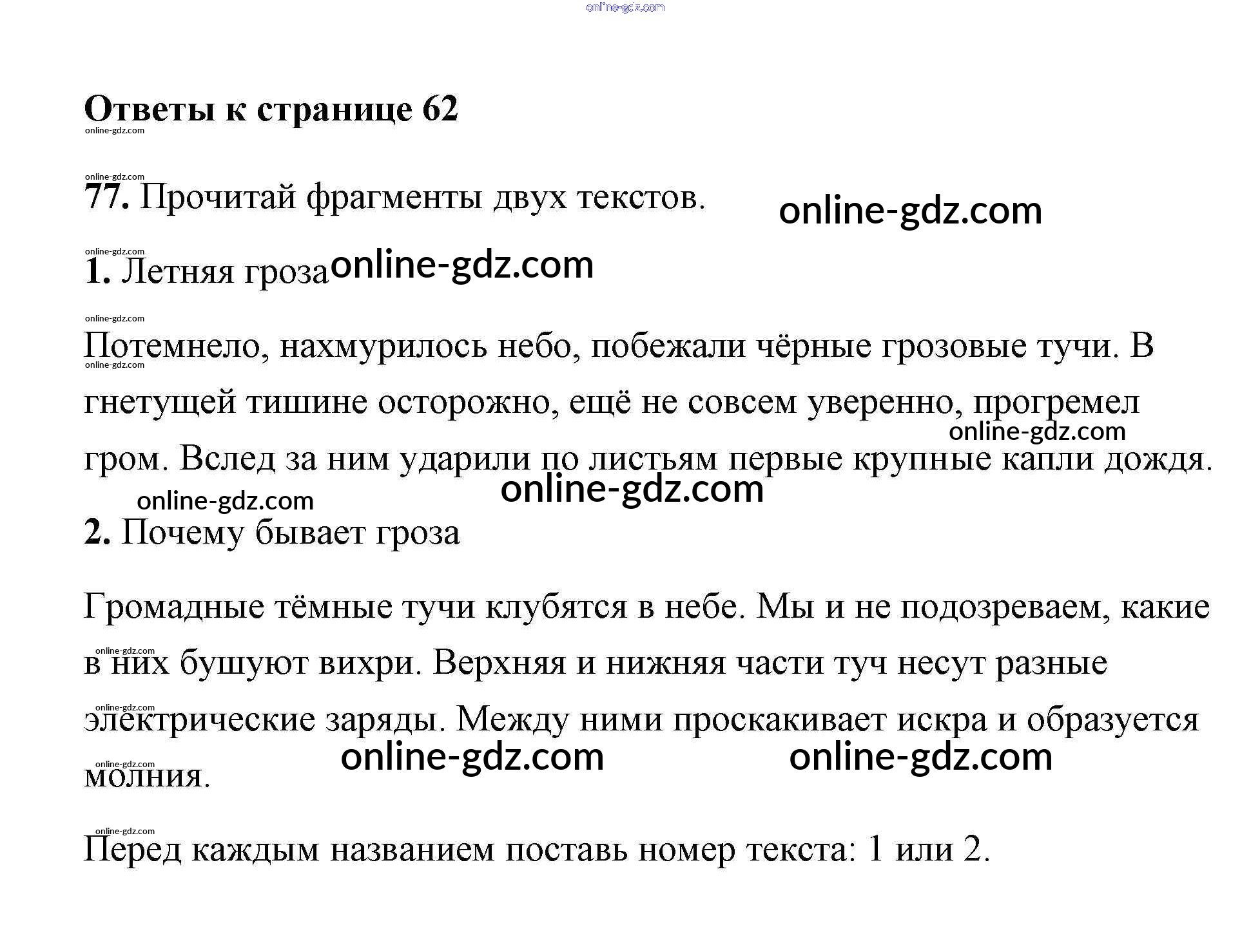 Готовые домашние задания по Русскому языку за 2 класс Тетрадь для самостоятельной работы Байкова, Малаховская 2017 - Часть 1. Страницы 62