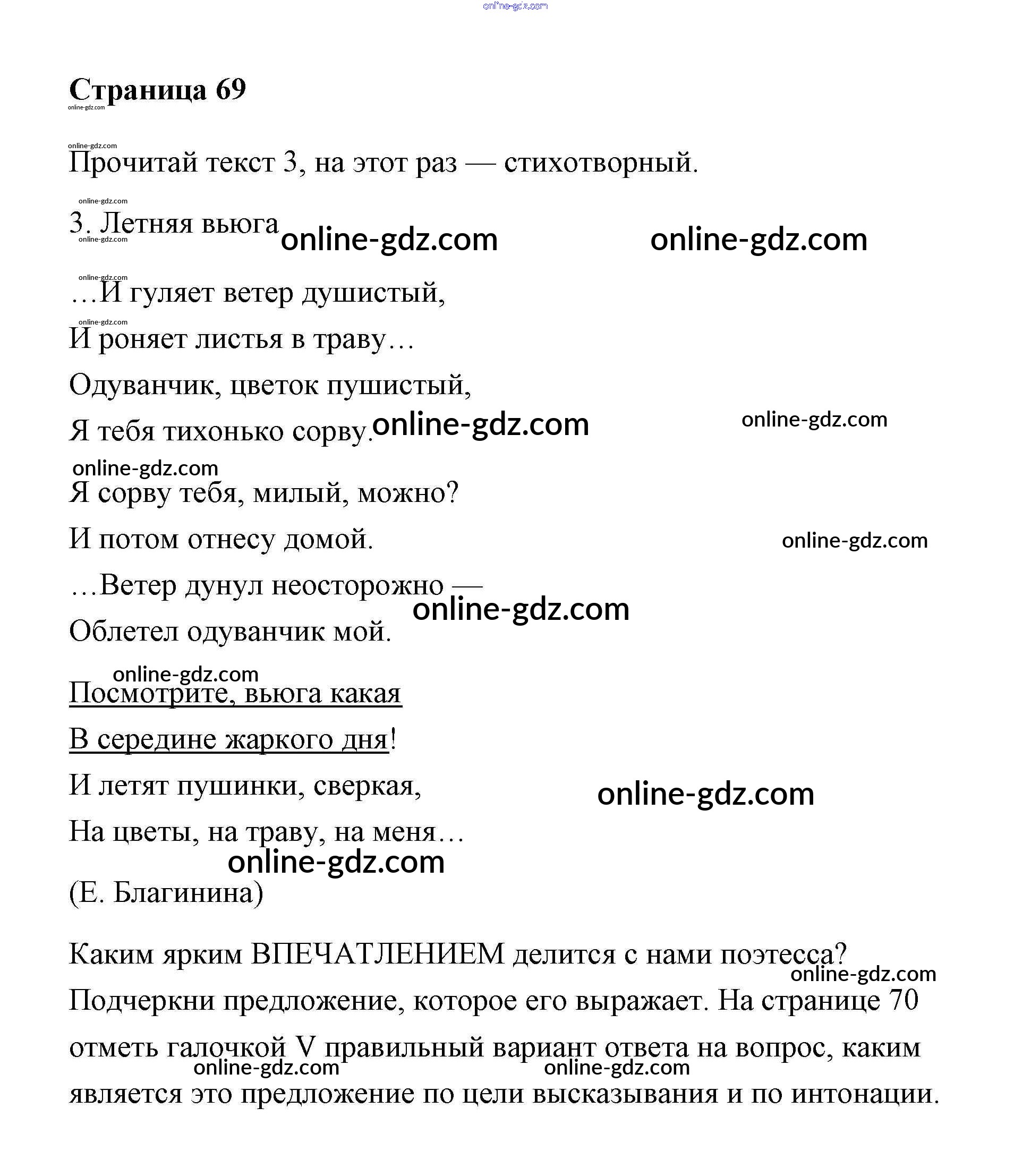 Готовые домашние задания по Русскому языку за 2 класс Тетрадь для самостоятельной работы Байкова, Малаховская 2017 - Часть 1. Страницы 69