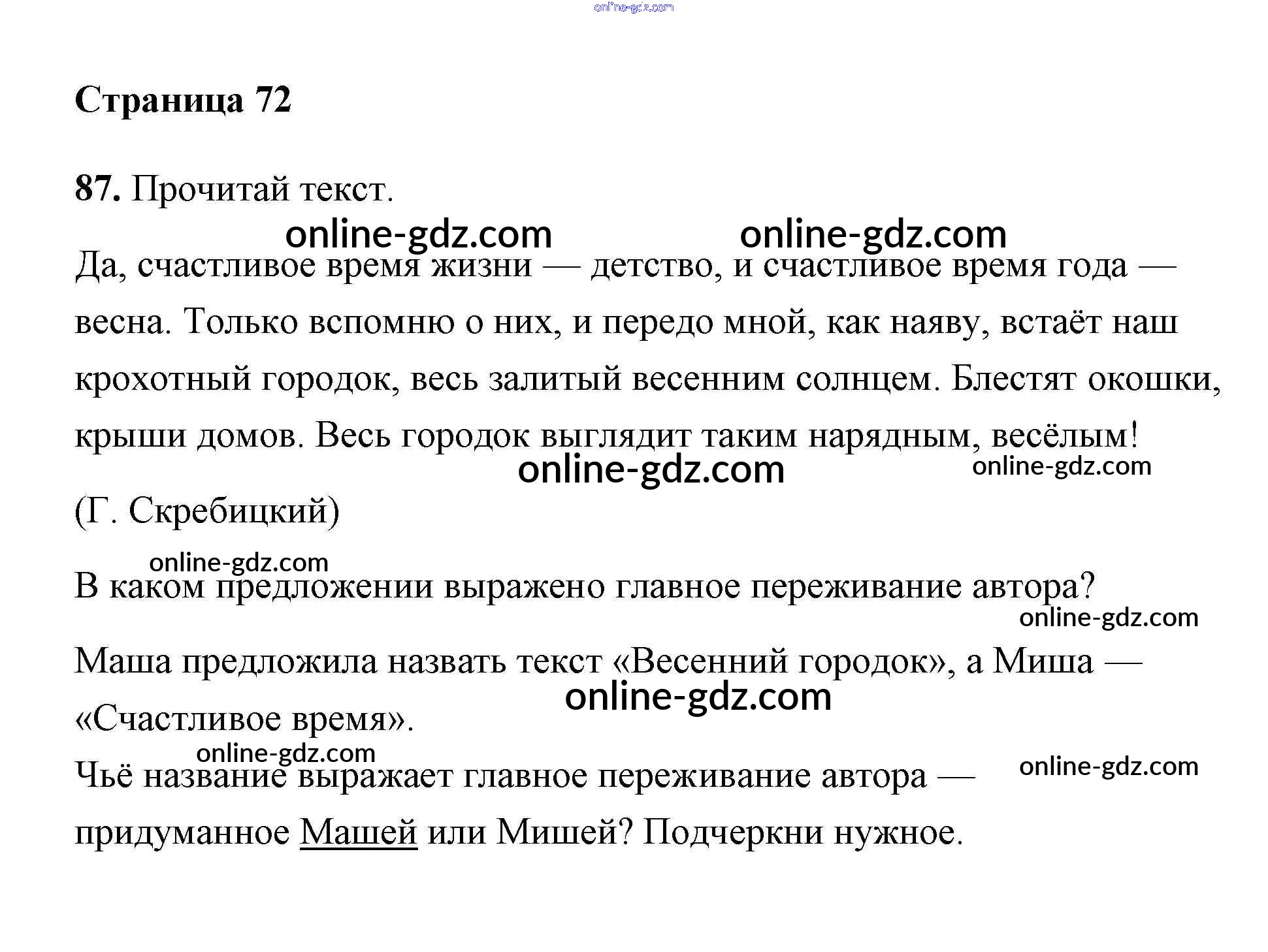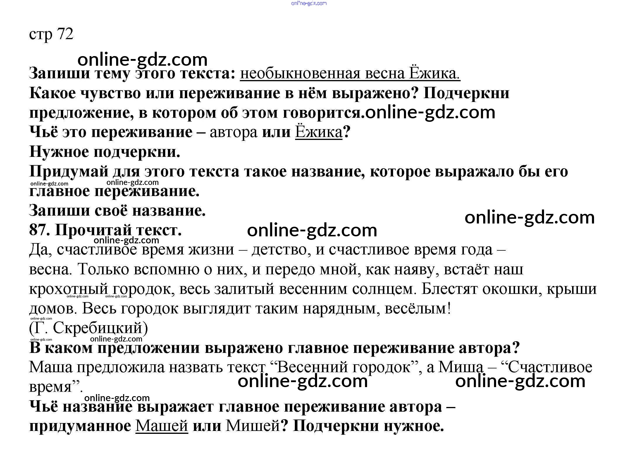 Готовые домашние задания по Русскому языку за 2 класс Тетрадь для самостоятельной работы Байкова, Малаховская 2017 - Часть 1. Страницы 72