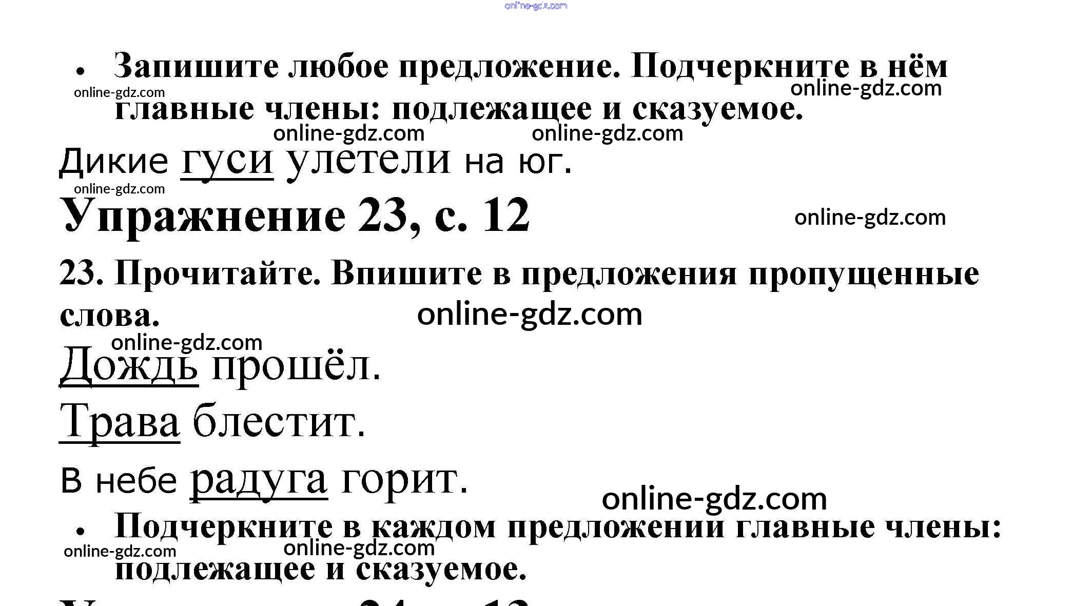 Готовые домашние задания по Русскому языку за 2 класс Рабочая тетрадь Канакина Школа России 2012 - Часть 1. Страницы 12
