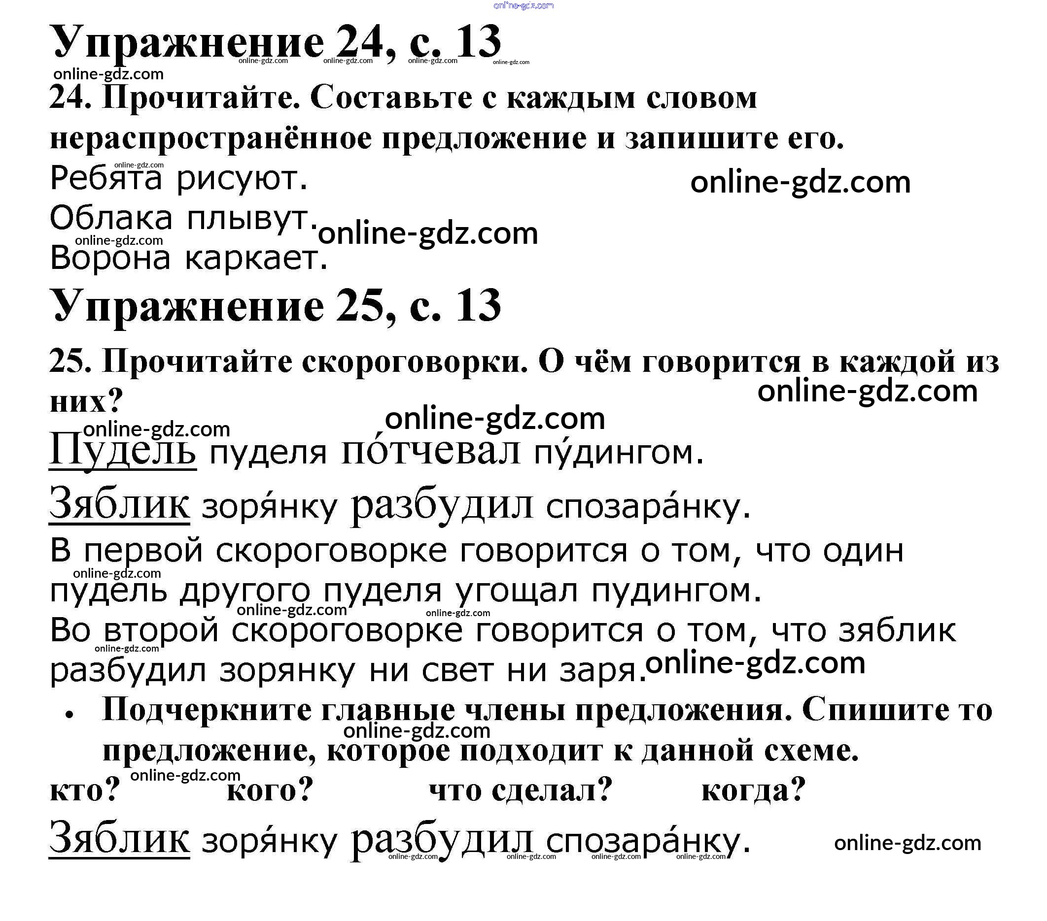 Готовые домашние задания по Русскому языку за 2 класс Рабочая тетрадь Канакина Школа России 2012 - Часть 1. Страницы 13