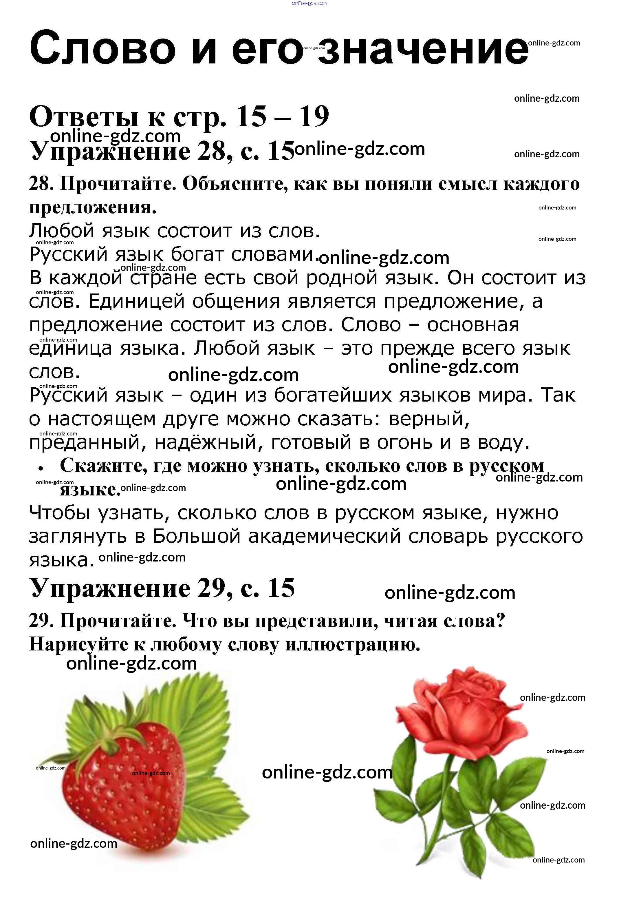 Готовые домашние задания по Русскому языку за 2 класс Рабочая тетрадь Канакина Школа России 2012 - Часть 1. Страницы 15