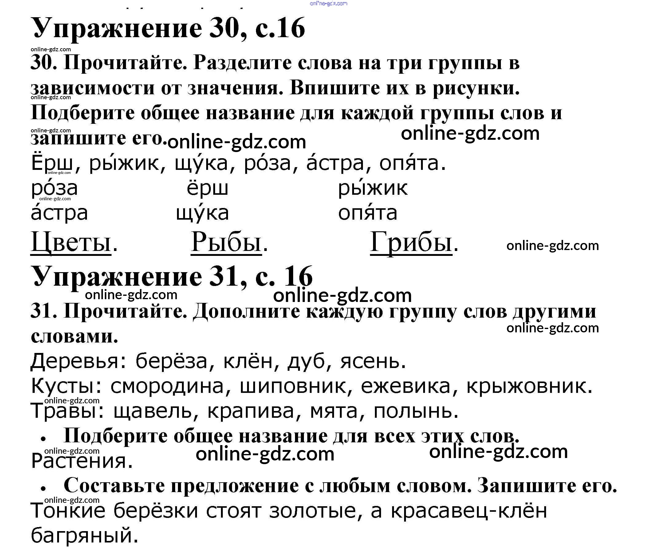 Готовые домашние задания по Русскому языку за 2 класс Рабочая тетрадь Канакина Школа России 2012 - Часть 1. Страницы 16