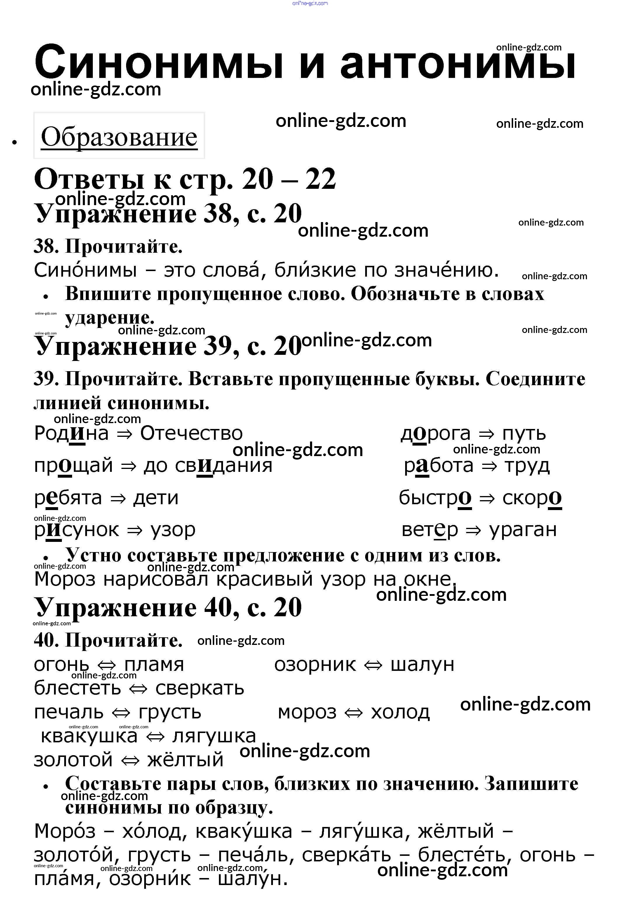 Готовые домашние задания по Русскому языку за 2 класс Рабочая тетрадь Канакина Школа России 2012 - Часть 1. Страницы 20