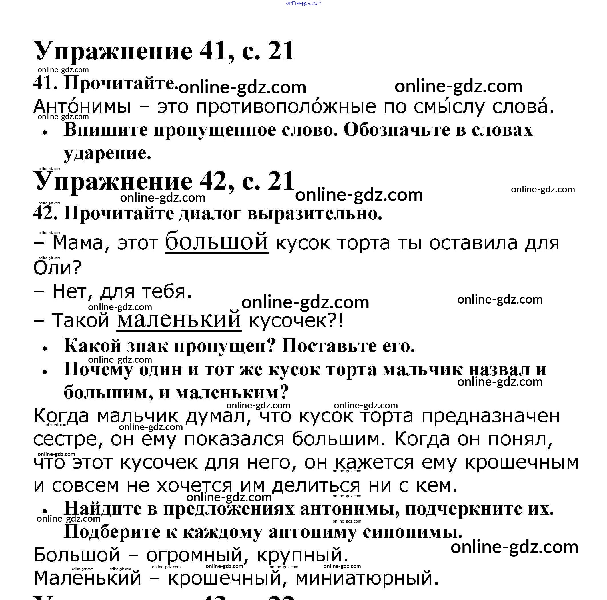 Готовые домашние задания по Русскому языку за 2 класс Рабочая тетрадь Канакина Школа России 2012 - Часть 1. Страницы 21