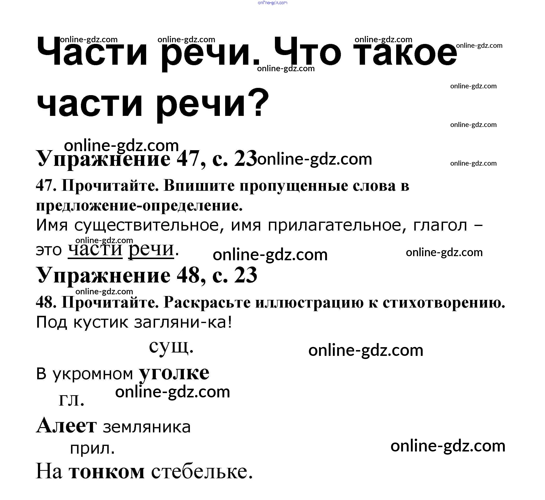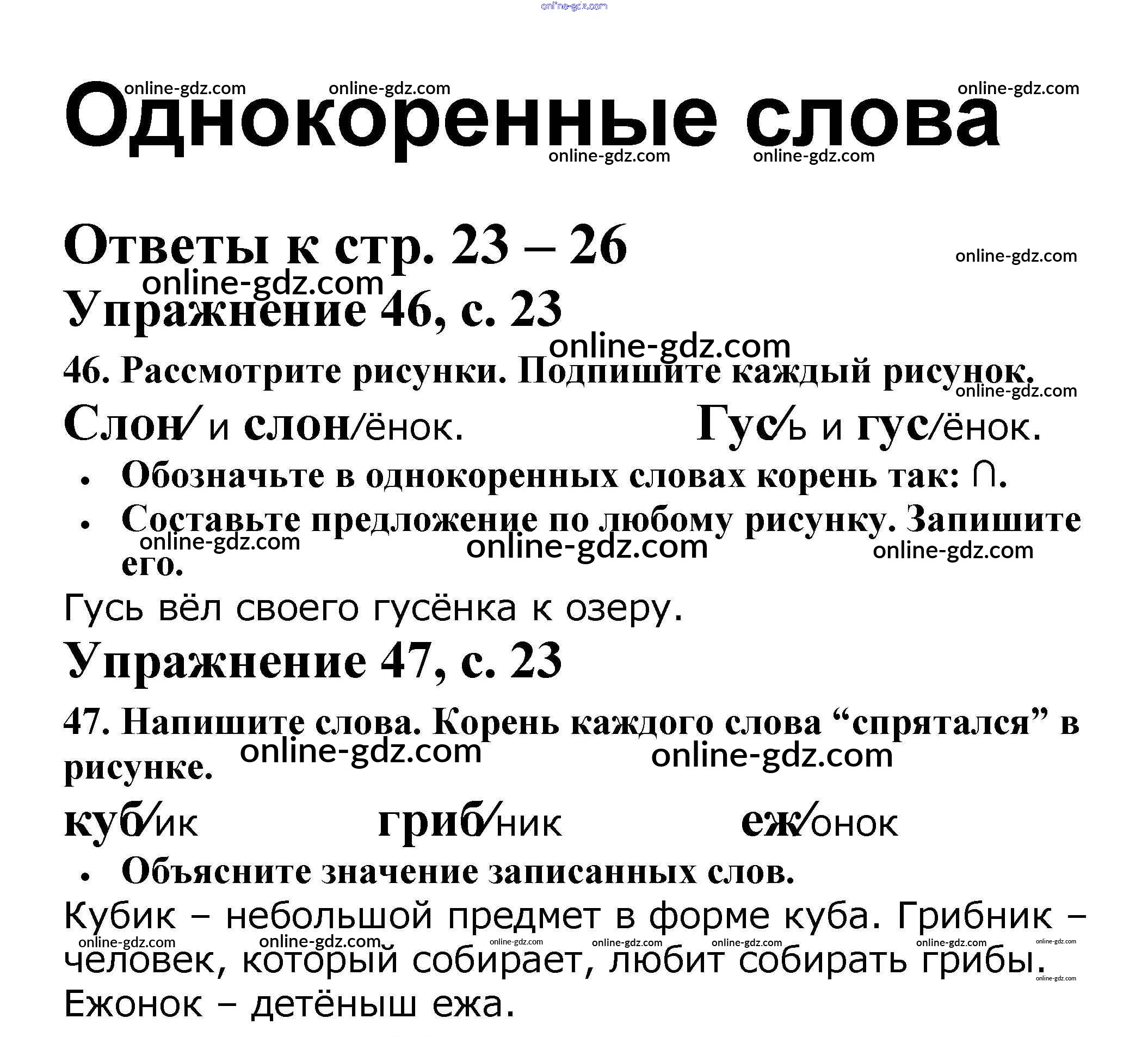 Готовые домашние задания по Русскому языку за 2 класс Рабочая тетрадь Канакина Школа России 2012 - Часть 1. Страницы 23