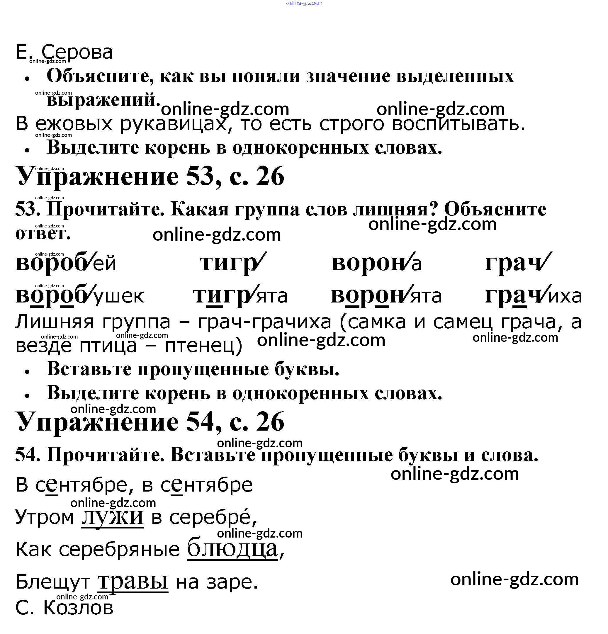Готовые домашние задания по Русскому языку за 2 класс Рабочая тетрадь Канакина Школа России 2012 - Часть 1. Страницы 26