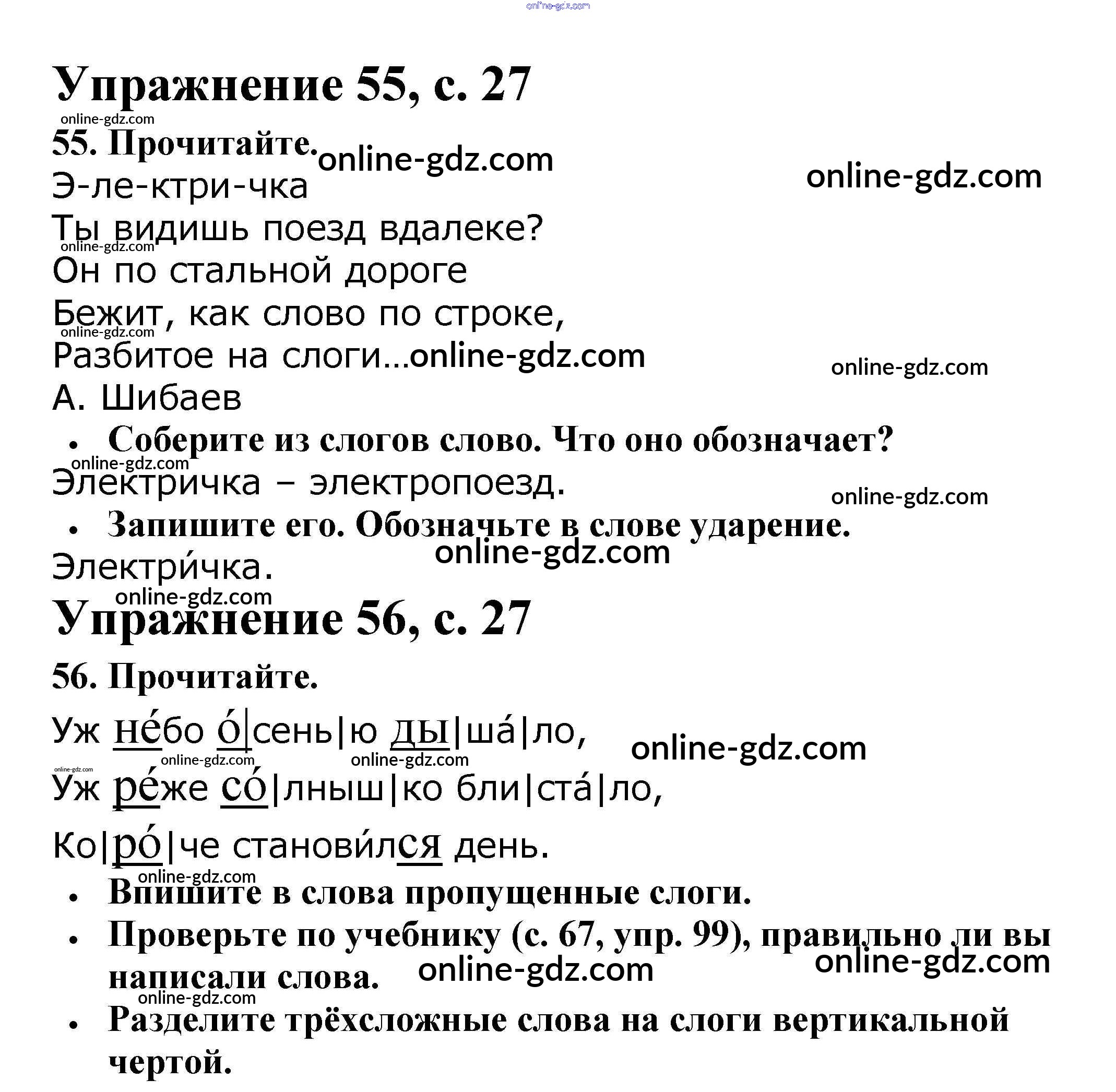 Готовые домашние задания по Русскому языку за 2 класс Рабочая тетрадь Канакина Школа России 2012 - Часть 1. Страницы 27