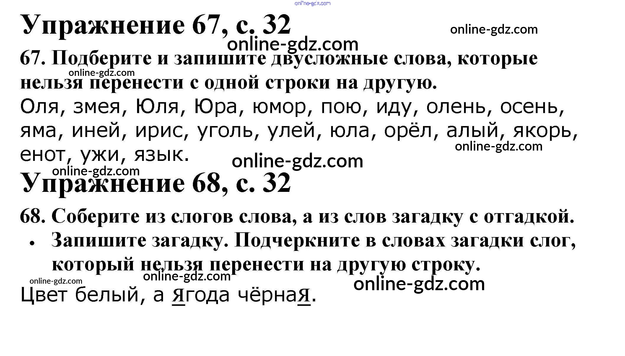 Готовые домашние задания по Русскому языку за 2 класс Рабочая тетрадь Канакина Школа России 2012 - Часть 1. Страницы 32
