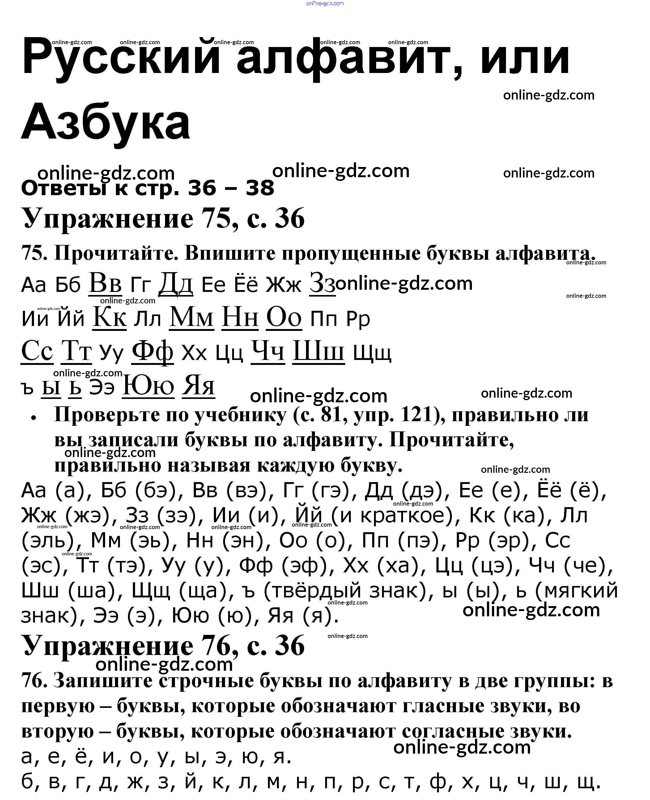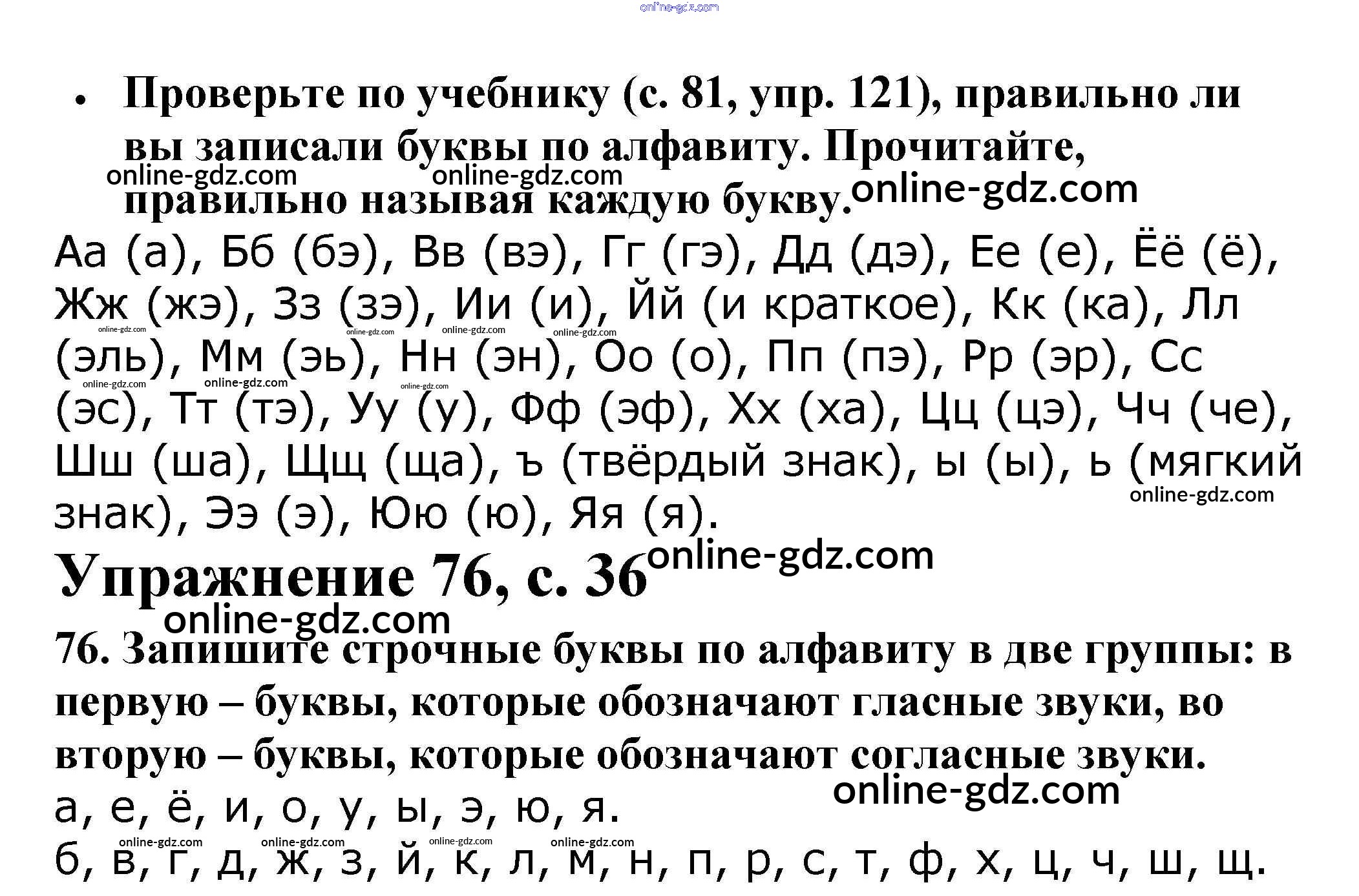 Готовые домашние задания по Русскому языку за 2 класс Рабочая тетрадь Канакина Школа России 2012 - Часть 1. Страницы 36