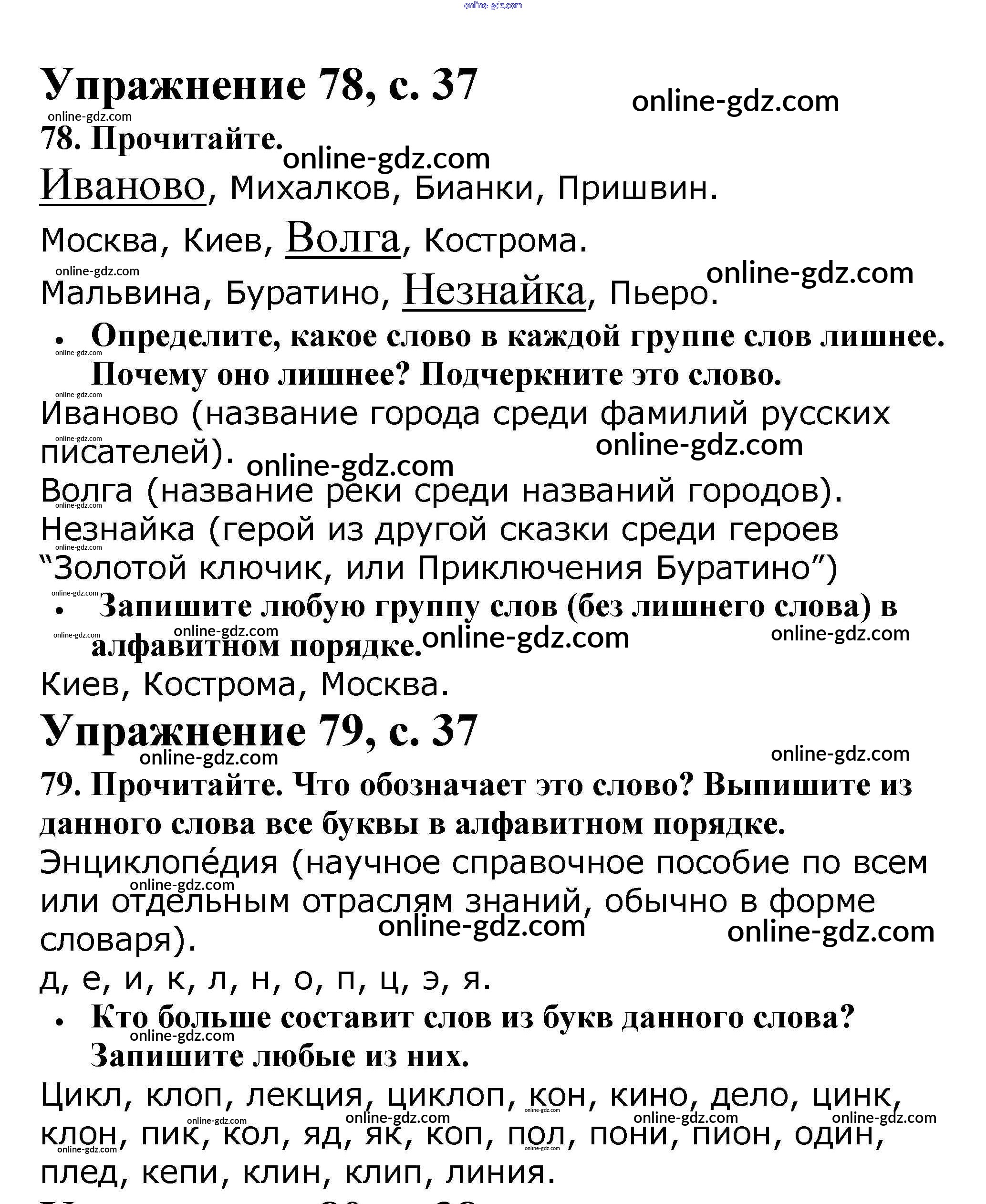 Готовые домашние задания по Русскому языку за 2 класс Рабочая тетрадь Канакина Школа России 2012 - Часть 1. Страницы 37