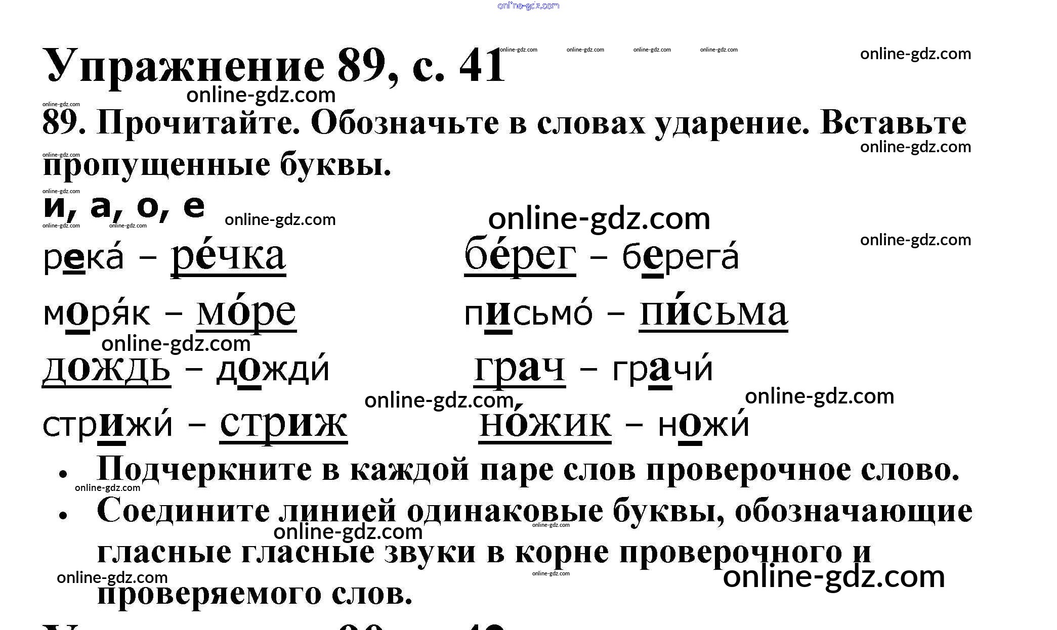 Готовые домашние задания по Русскому языку за 2 класс Рабочая тетрадь Канакина Школа России 2012 - Часть 1. Страницы 41