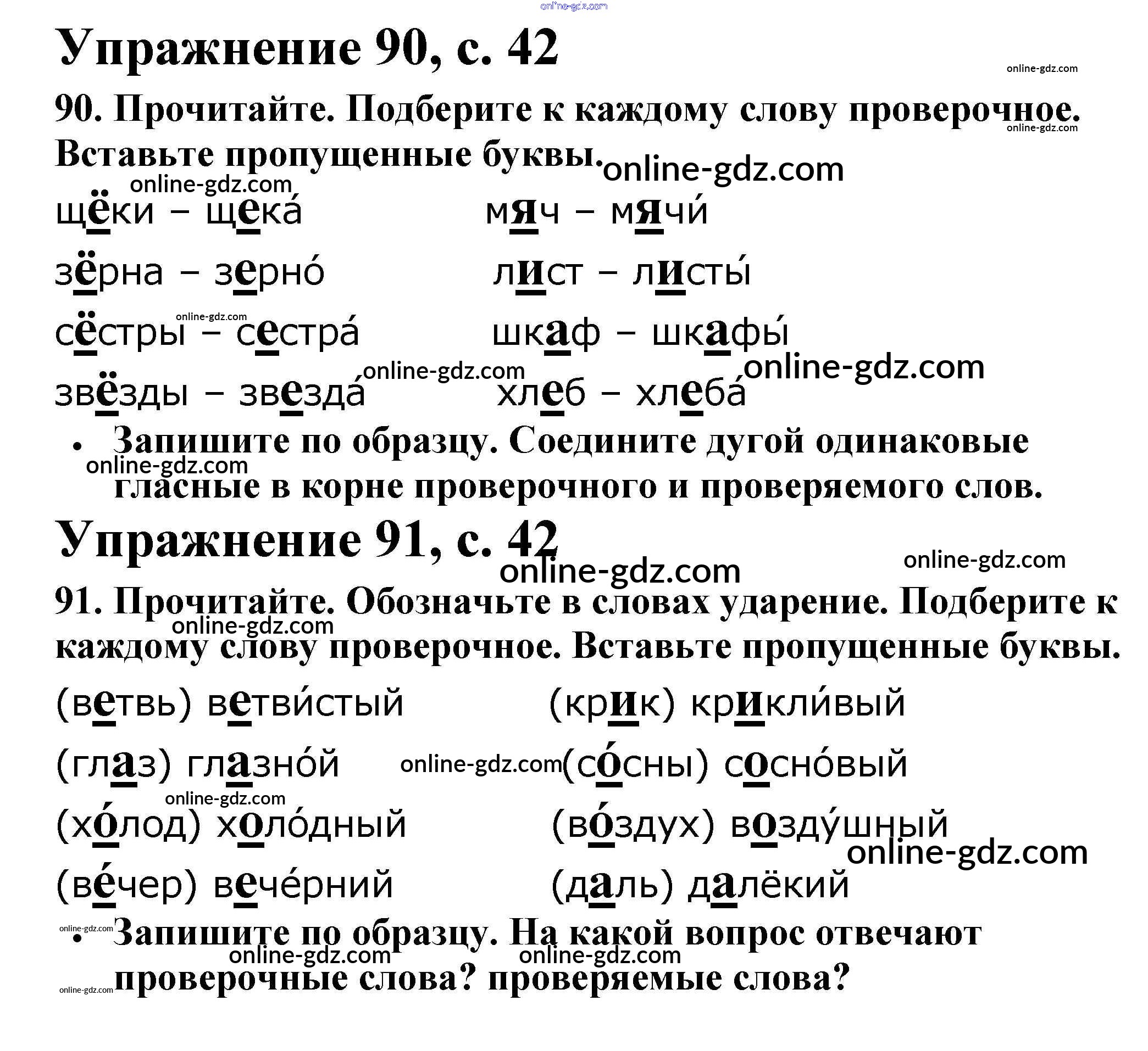 Готовые домашние задания по Русскому языку за 2 класс Рабочая тетрадь Канакина Школа России 2012 - Часть 1. Страницы 42