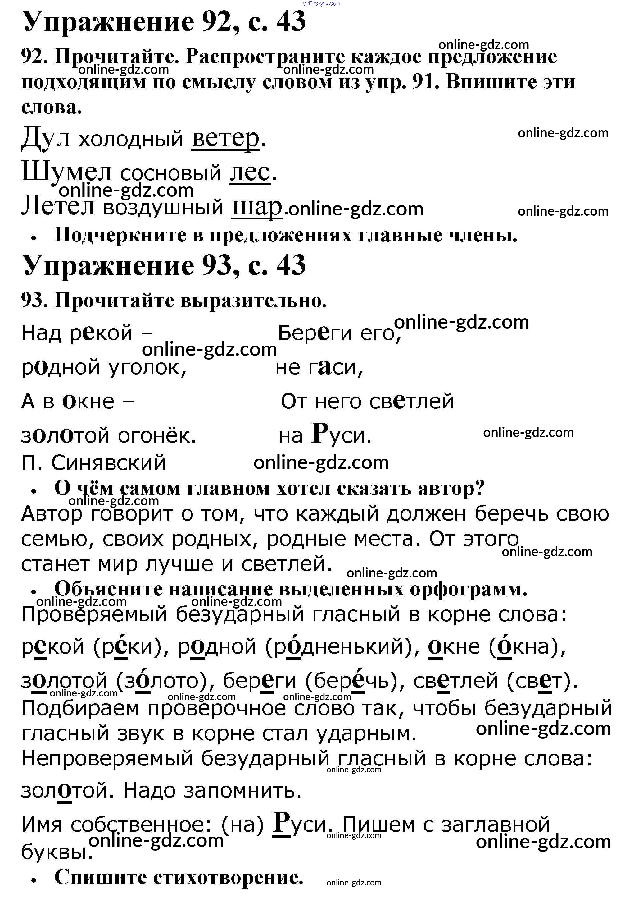 Готовые домашние задания по Русскому языку за 2 класс Рабочая тетрадь Канакина Школа России 2012 - Часть 1. Страницы 43