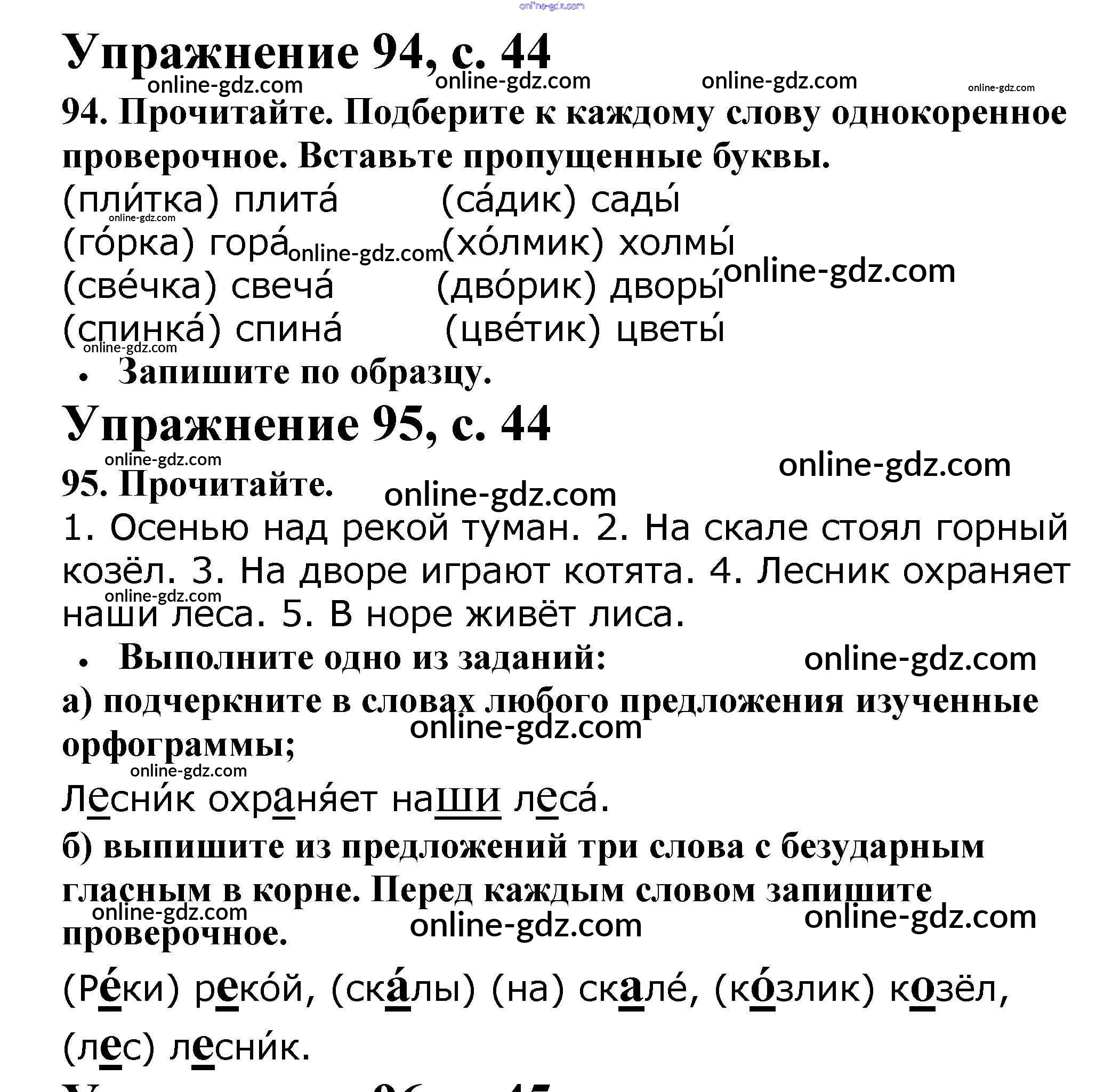Готовые домашние задания по Русскому языку за 2 класс Рабочая тетрадь Канакина Школа России 2012 - Часть 1. Страницы 44