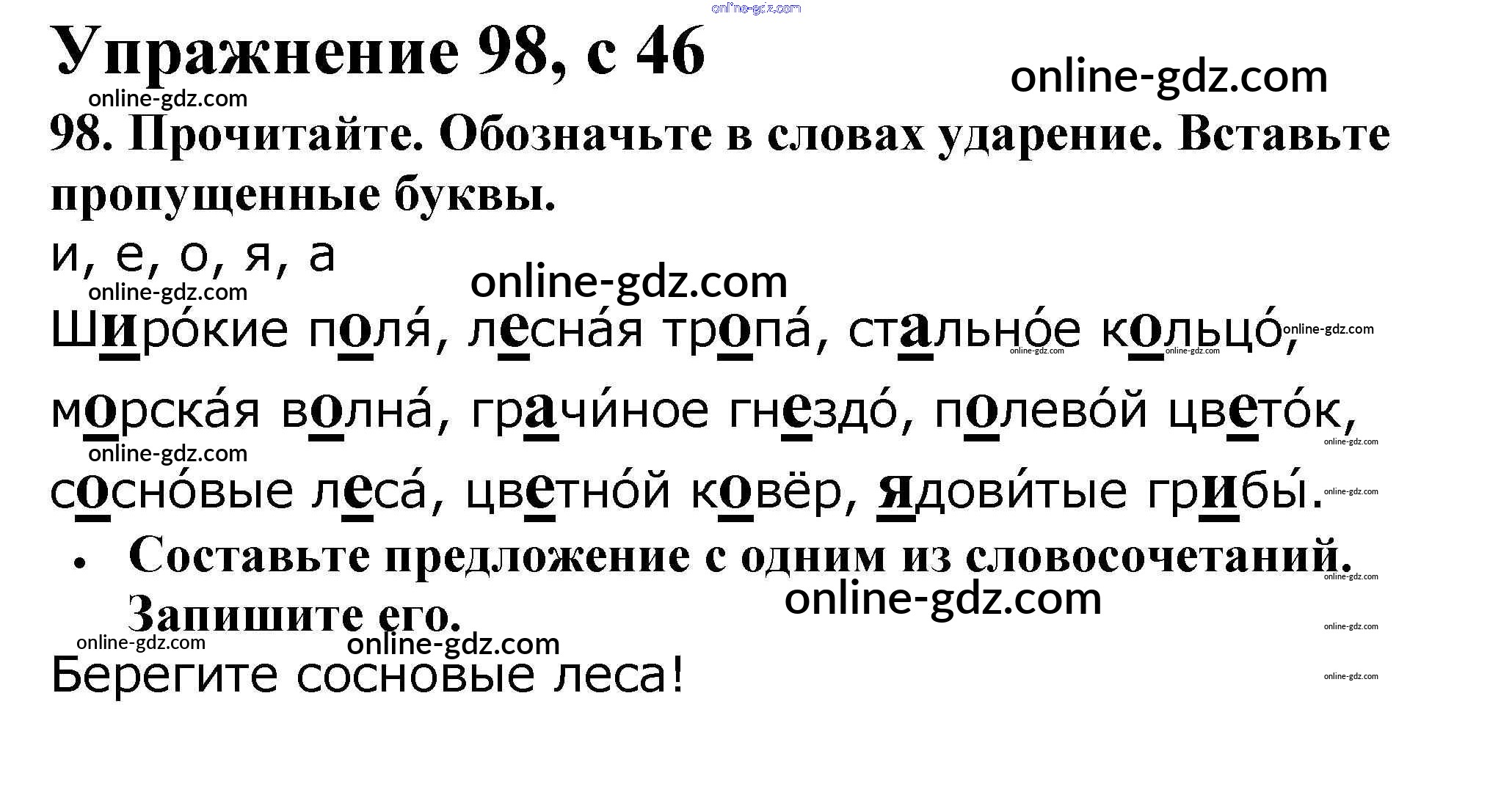 Готовые домашние задания по Русскому языку за 2 класс Рабочая тетрадь Канакина Школа России 2012 - Часть 1. Страницы 46