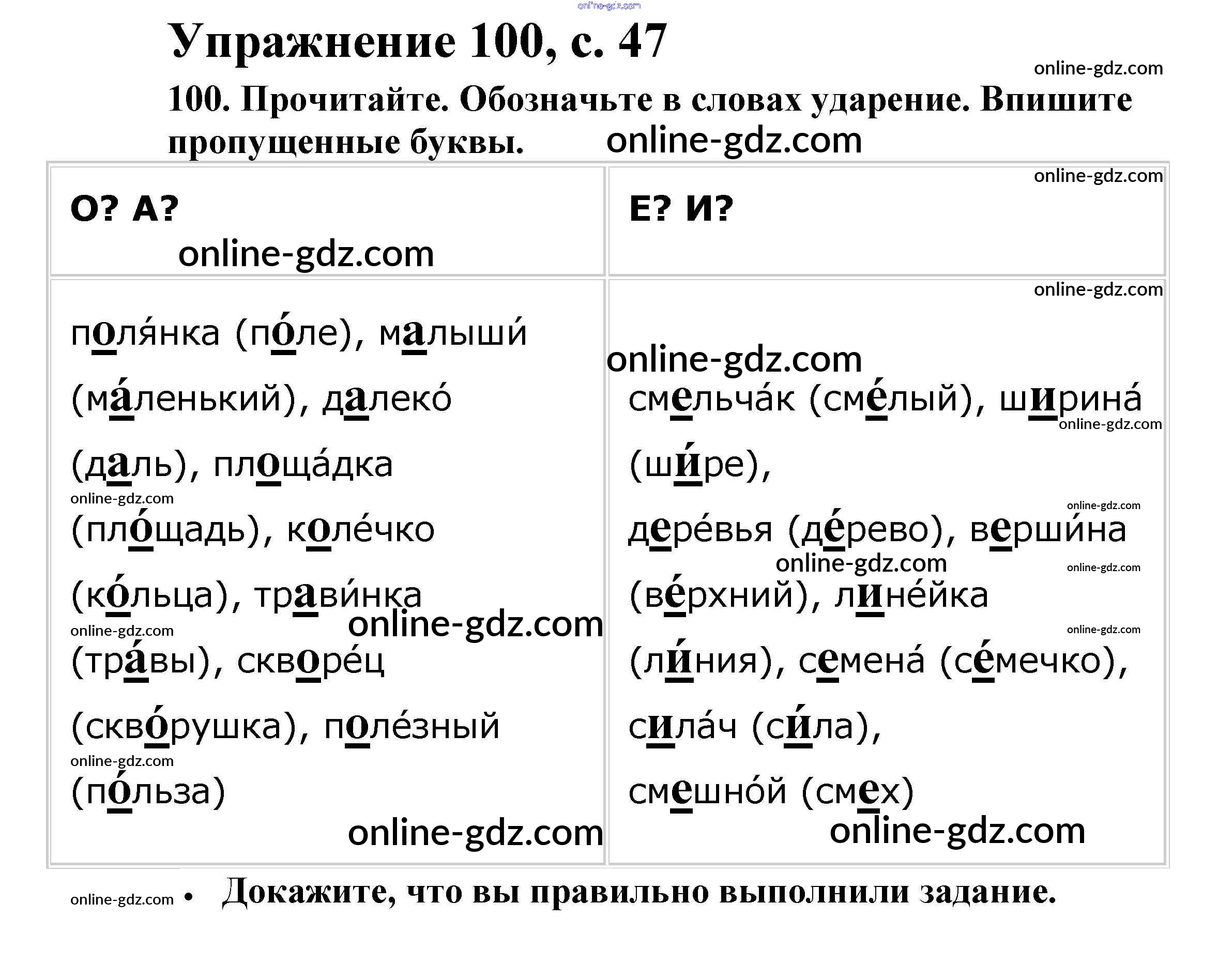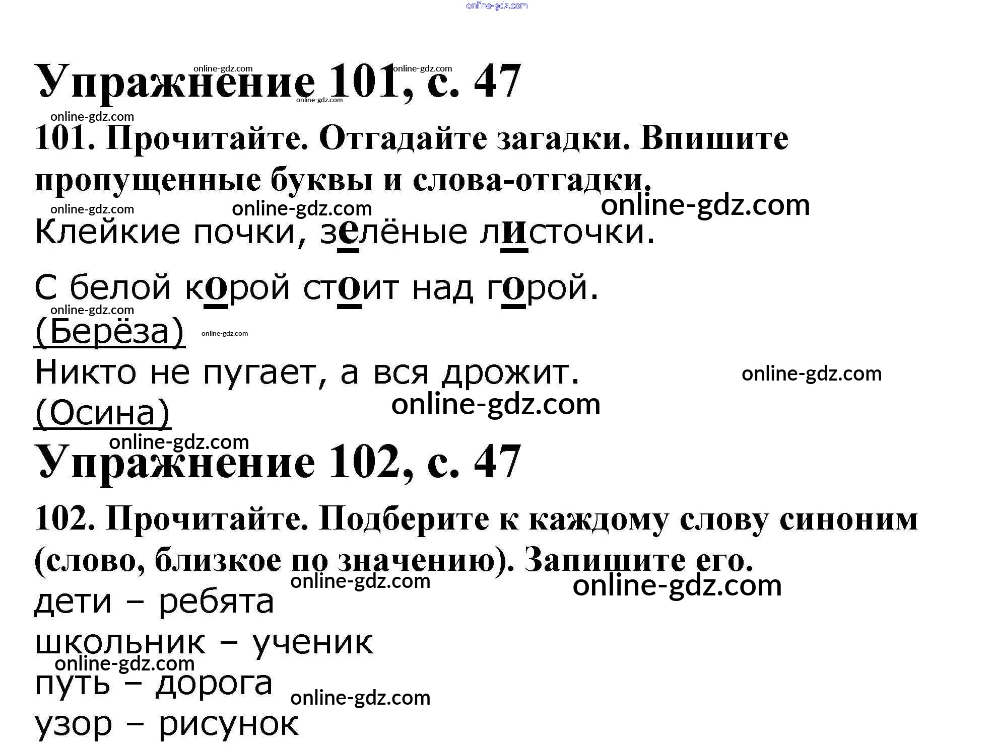 Готовые домашние задания по Русскому языку за 2 класс Рабочая тетрадь Канакина Школа России 2012 - Часть 1. Страницы 47