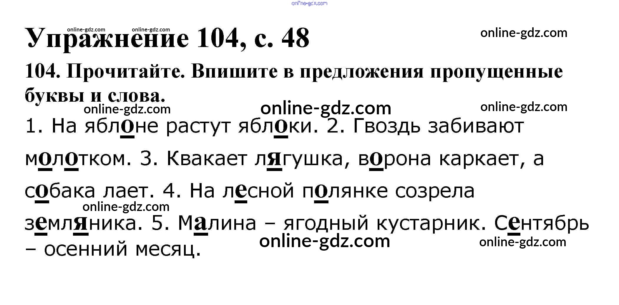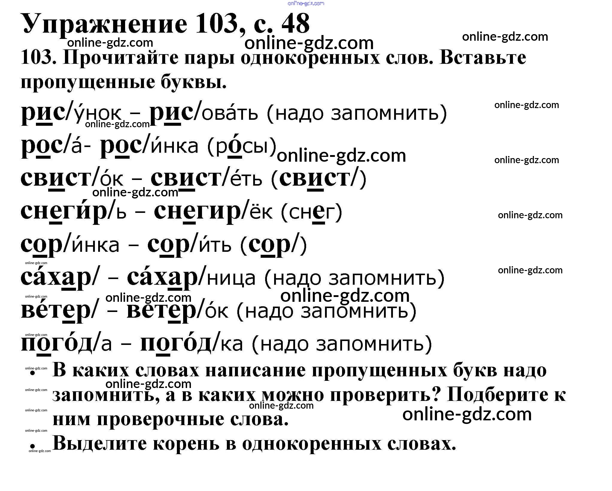 Готовые домашние задания по Русскому языку за 2 класс Рабочая тетрадь Канакина Школа России 2012 - Часть 1. Страницы 48
