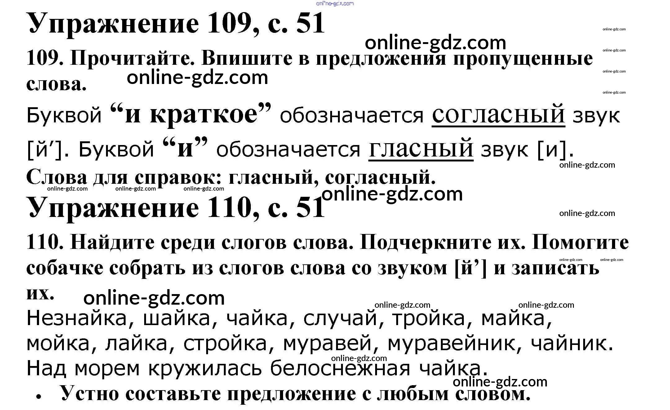 Готовые домашние задания по Русскому языку за 2 класс Рабочая тетрадь Канакина Школа России 2012 - Часть 1. Страницы 51