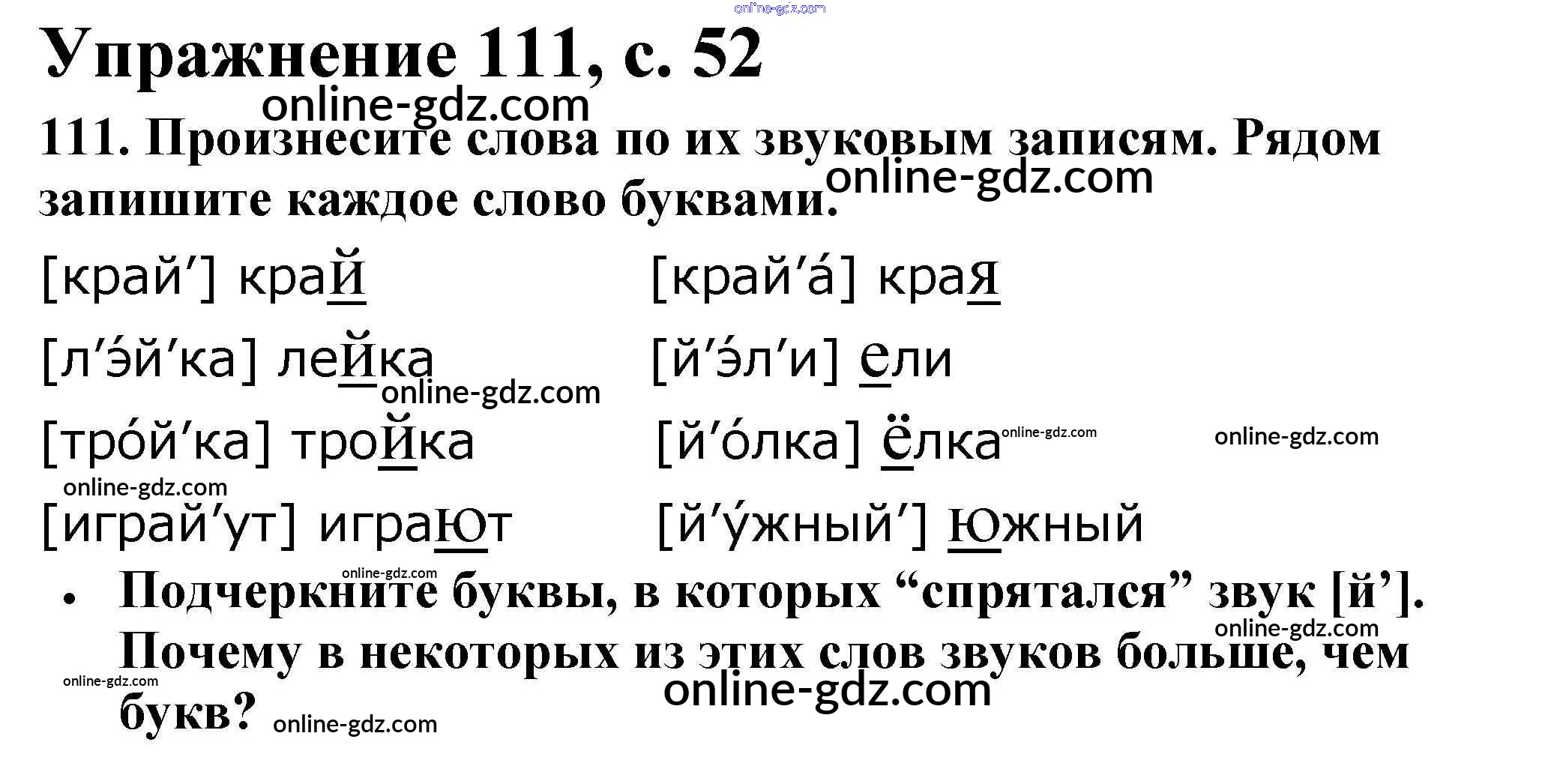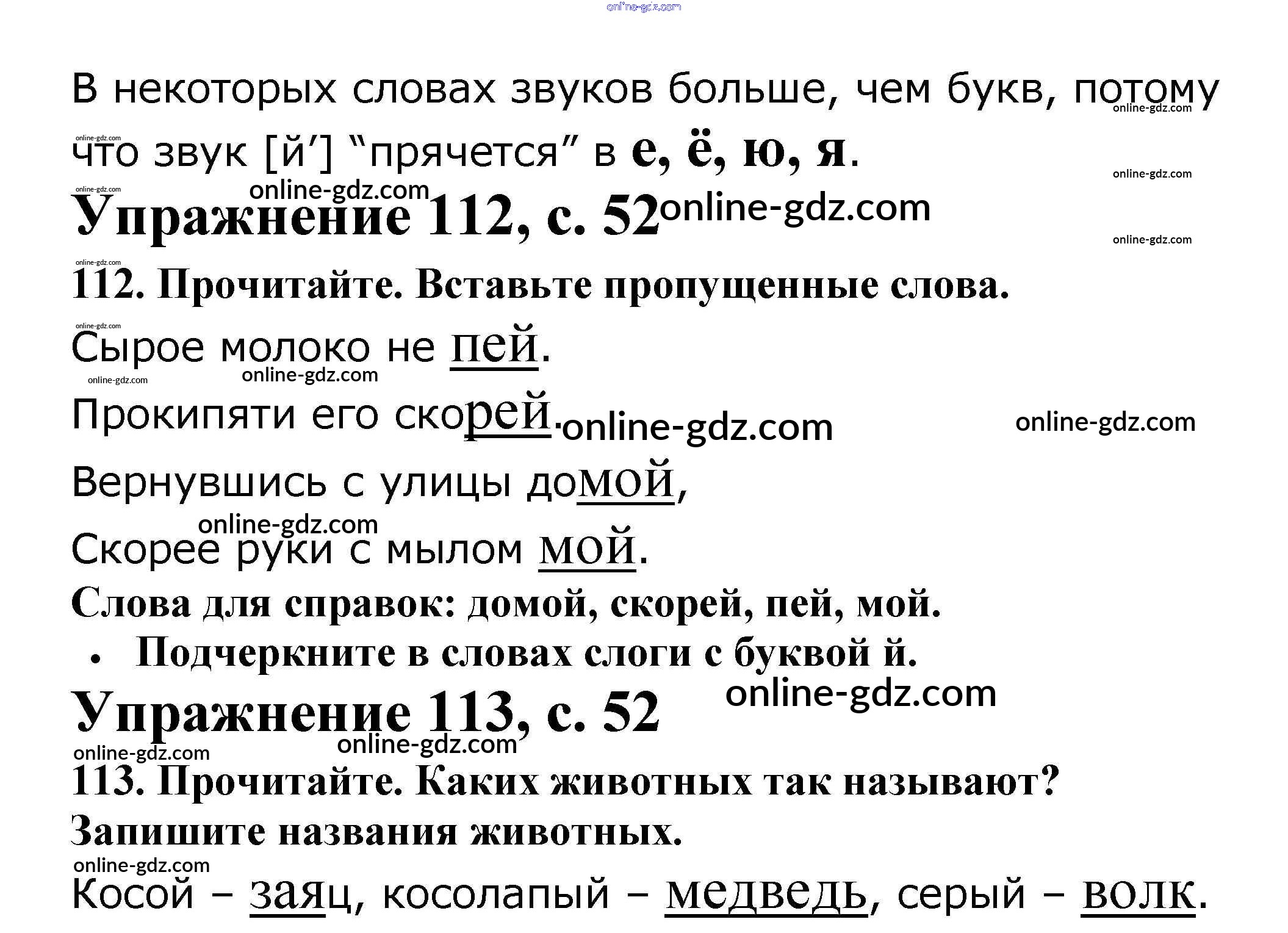 Готовые домашние задания по Русскому языку за 2 класс Рабочая тетрадь Канакина Школа России 2012 - Часть 1. Страницы 52