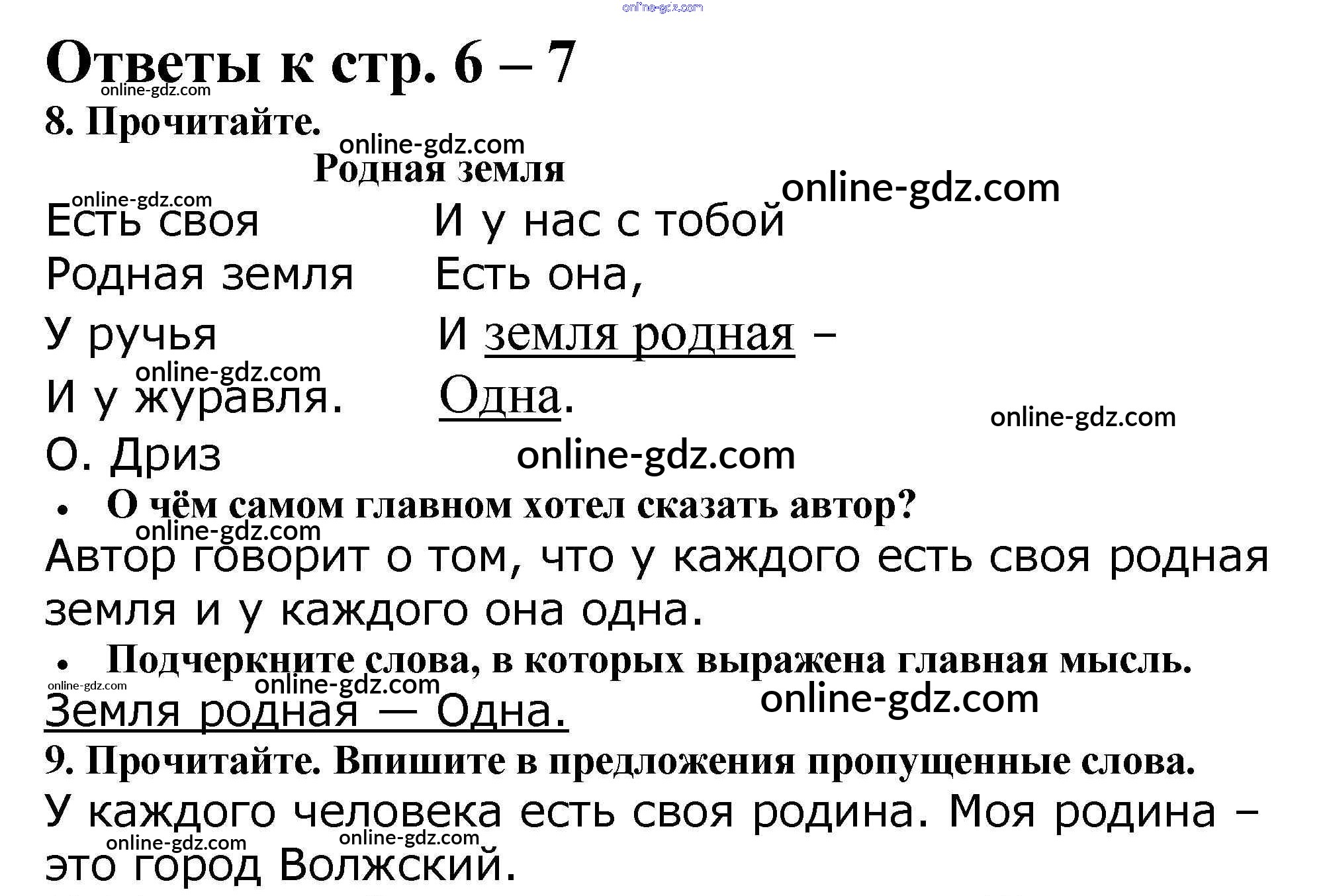 Готовые домашние задания по Русскому языку за 2 класс Рабочая тетрадь Канакина Школа России 2012 - Часть 1. Страницы 6