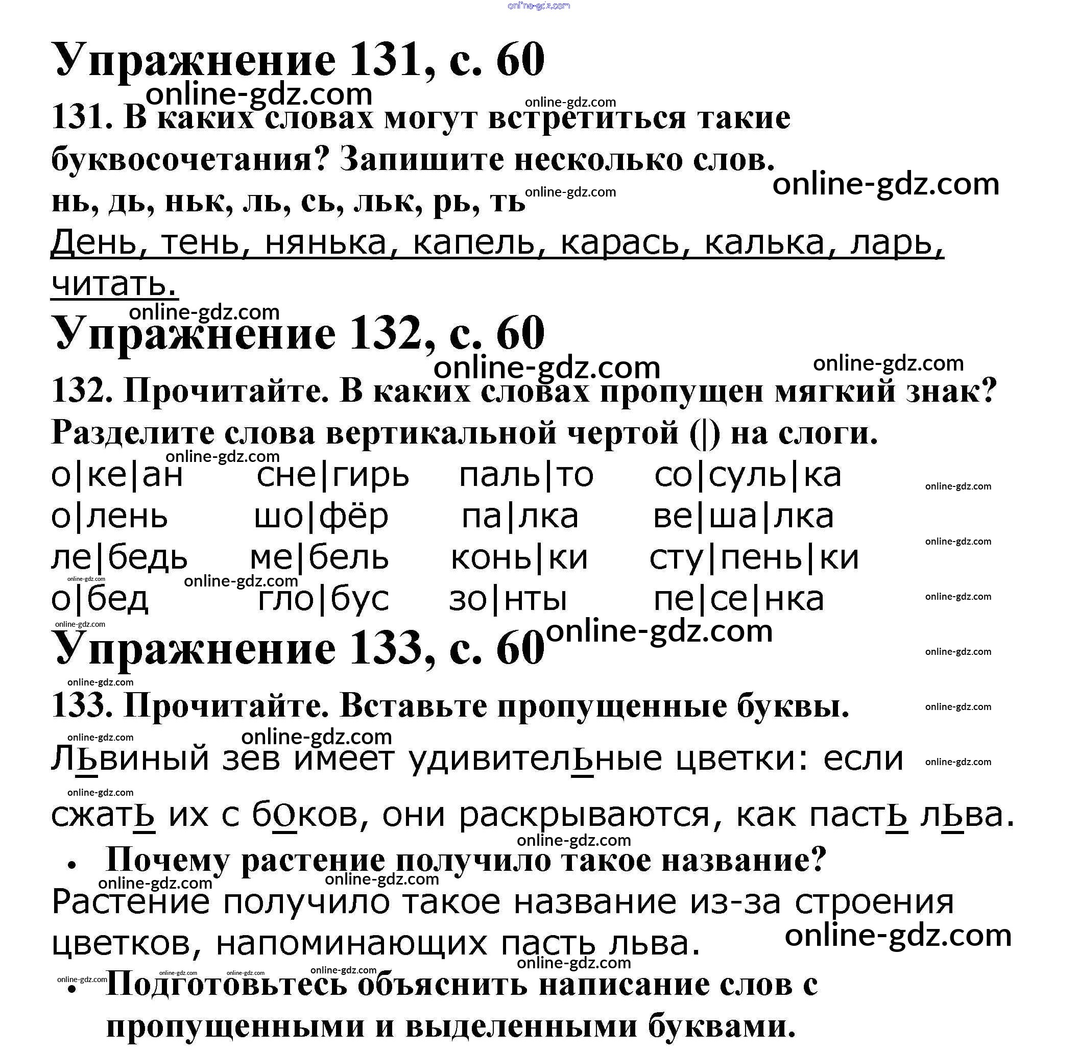 Готовые домашние задания по Русскому языку за 2 класс Рабочая тетрадь Канакина Школа России 2012 - Часть 1. Страницы 60