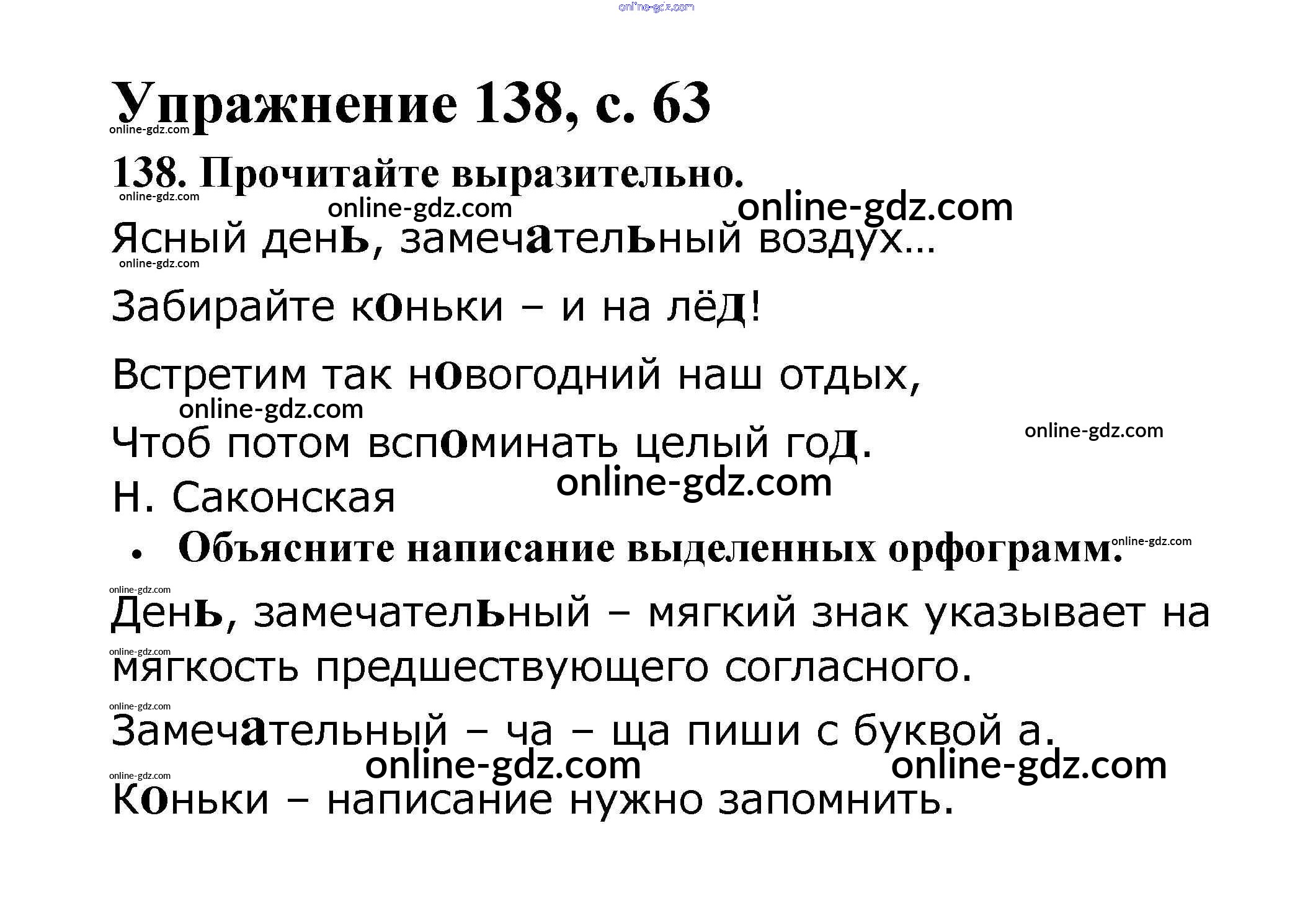 Готовые домашние задания по Русскому языку за 2 класс Рабочая тетрадь Канакина Школа России 2012 - Часть 1. Страницы 63
