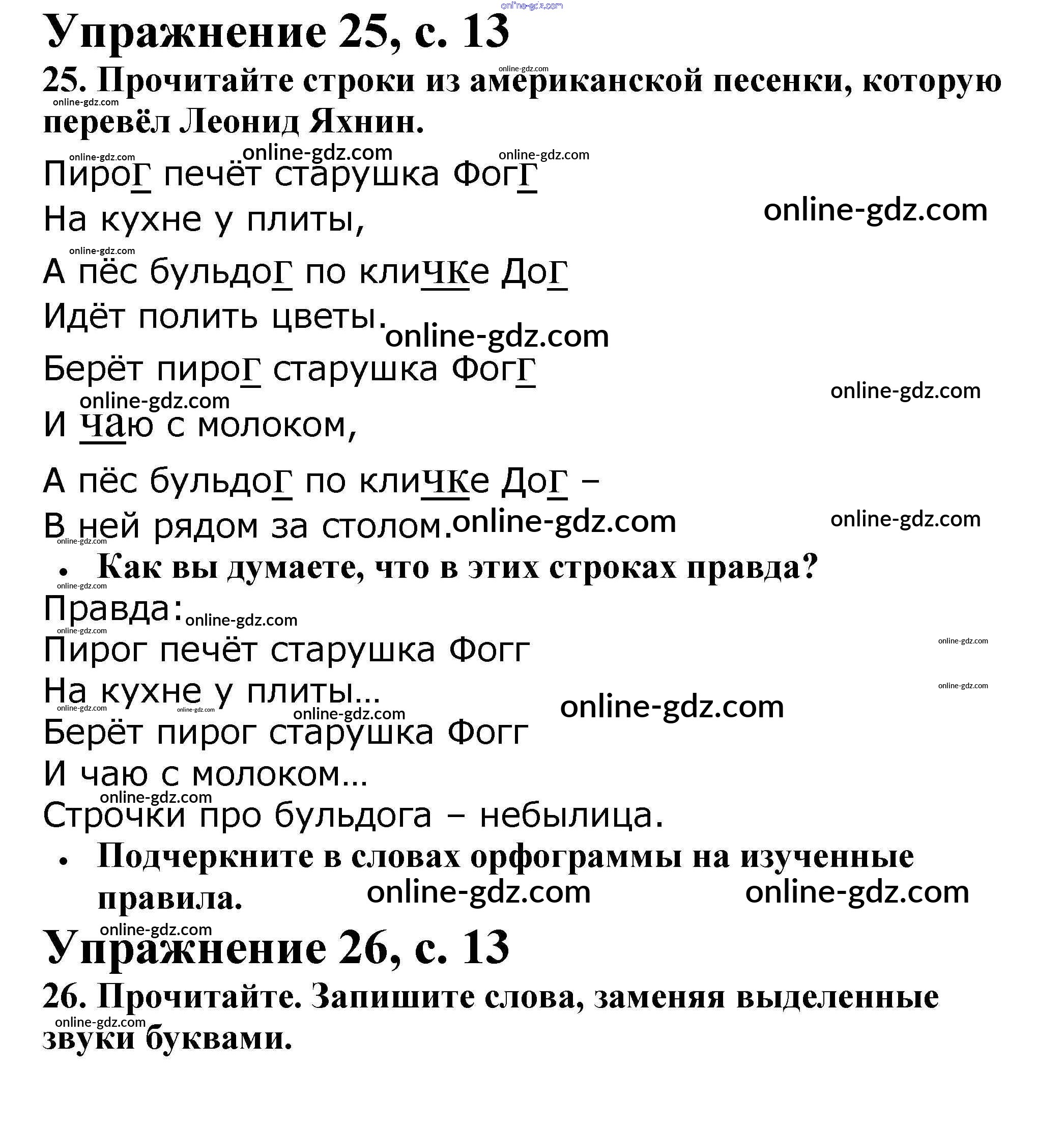 Готовые домашние задания по Русскому языку за 2 класс Рабочая тетрадь Канакина Школа России 2012 - Часть 2. Страницы 13