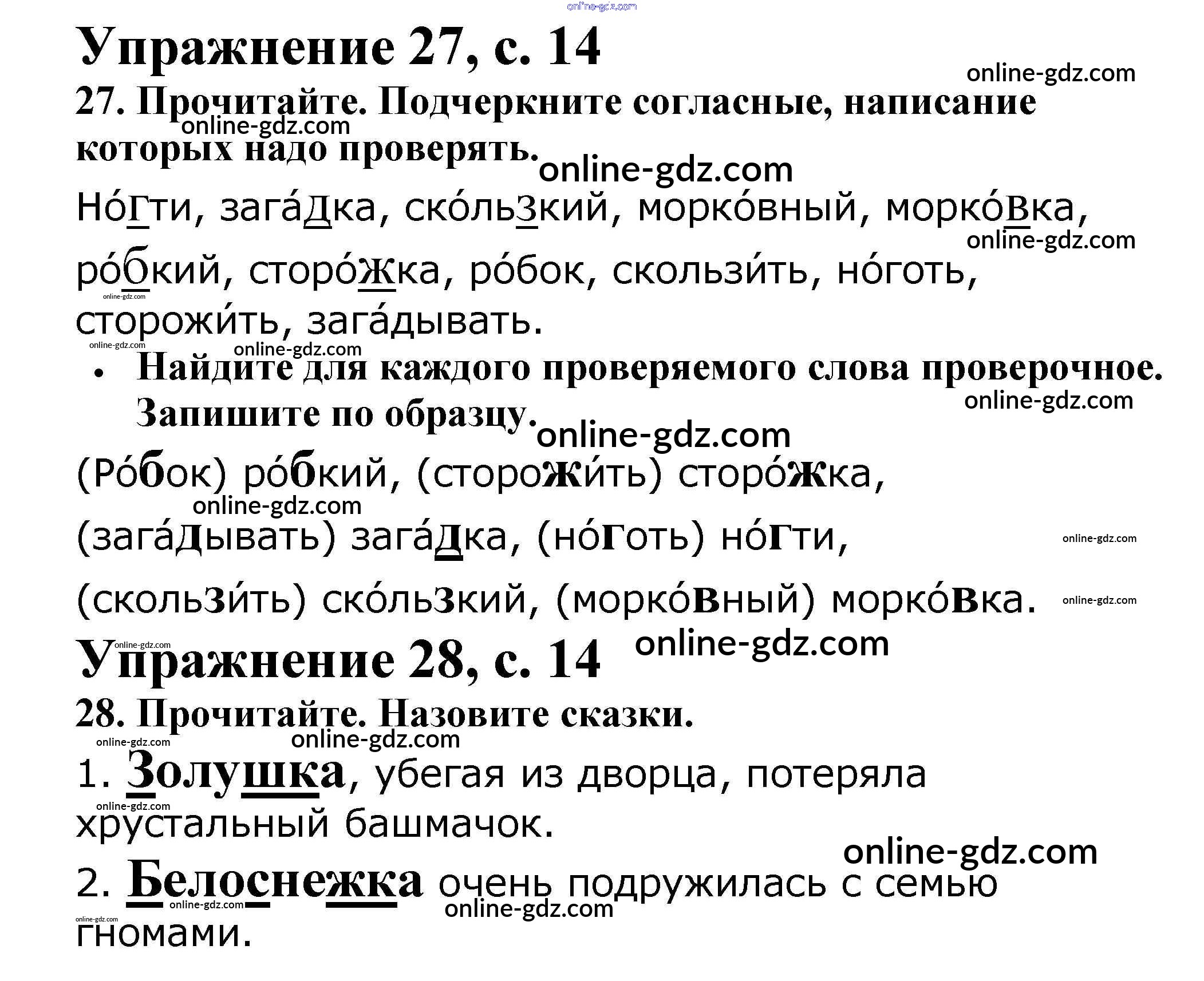Готовые домашние задания по Русскому языку за 2 класс Рабочая тетрадь Канакина Школа России 2012 - Часть 2. Страницы 14