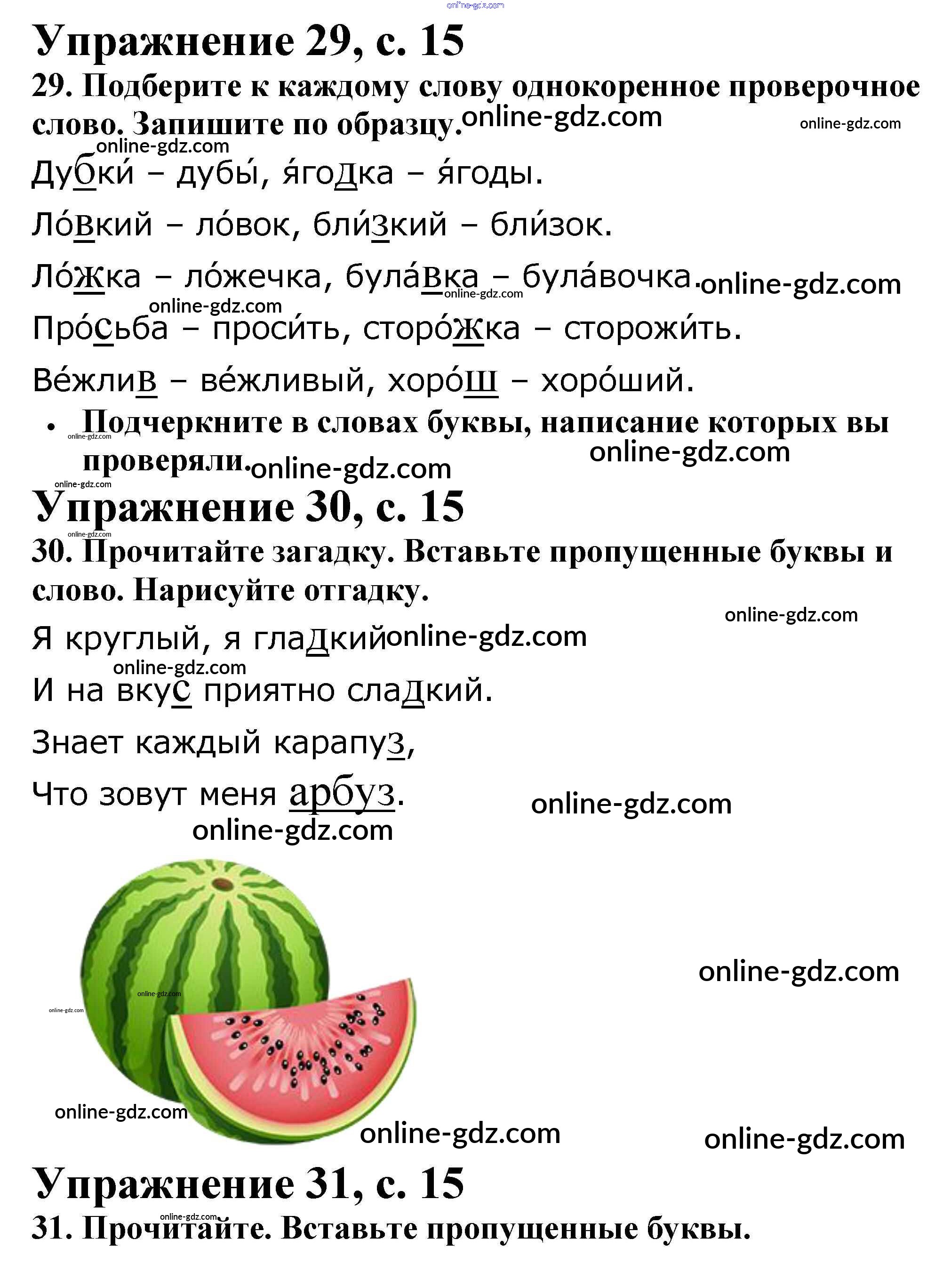 Готовые домашние задания по Русскому языку за 2 класс Рабочая тетрадь Канакина Школа России 2012 - Часть 2. Страницы 15